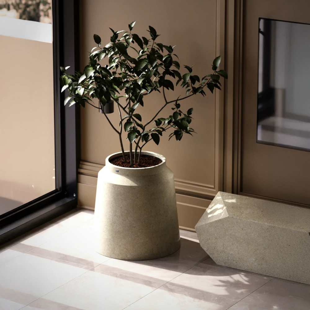 Il est important de choisir une taille de pot adaptée à votre plante. Lors de la plantation, il est recommandé d’ajouter de la pierre ponce au fond du pot ou d’utiliser Aurora avec le pot d’origine. Aurora est livrée sans trou de drainage ni soucoupe. Si nécessaire, un trou peut être percé facilement à l’aide d’une perceuse.