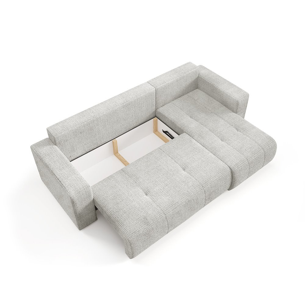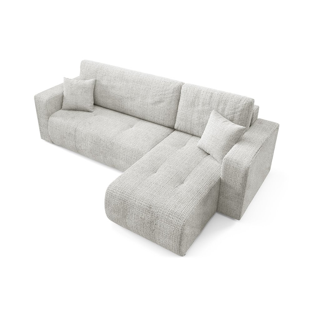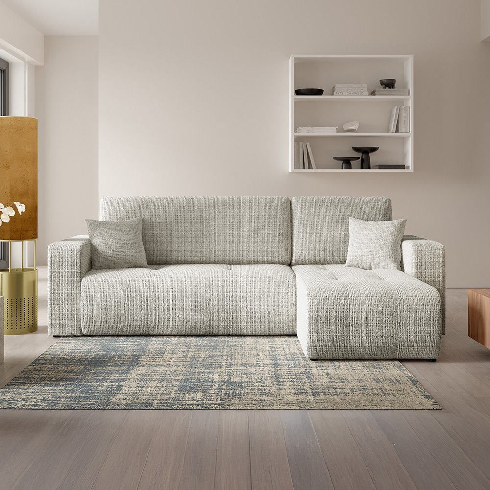 Canapé d'angle moderne et élégant, au design épuré, recouvert d'un tissu texturé pour un confort optimal. Idéal pour sublimer votre salon avec une touche de sophistication.