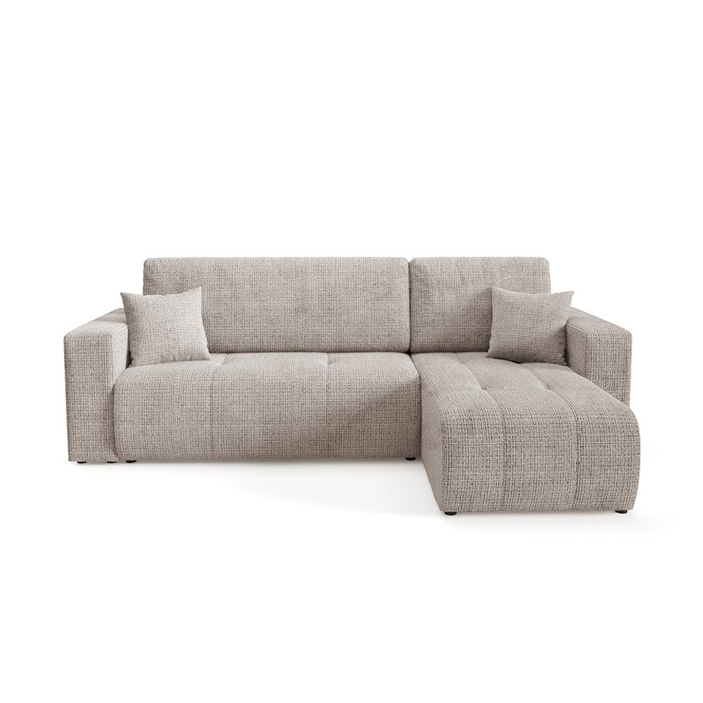 Canapé d'angle moderne et élégant, au design épuré, recouvert d'un tissu texturé pour un confort optimal. Idéal pour sublimer votre salon avec une touche de sophistication.