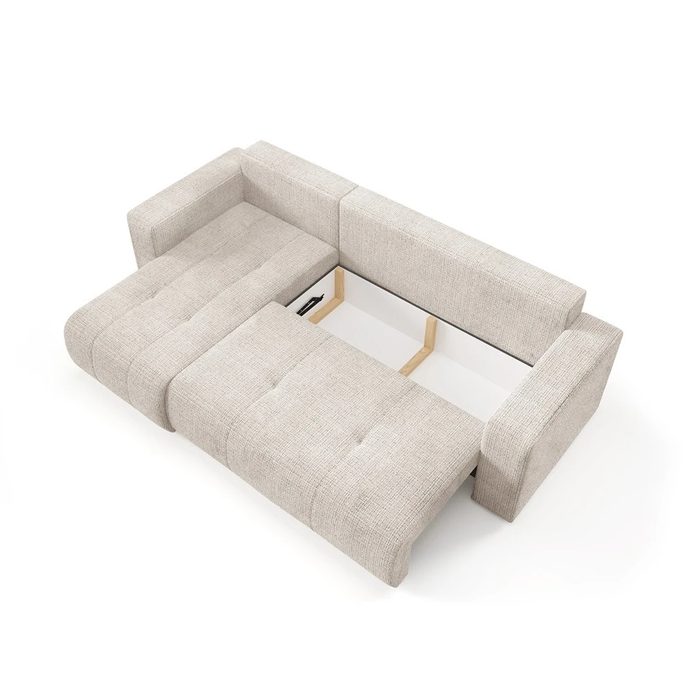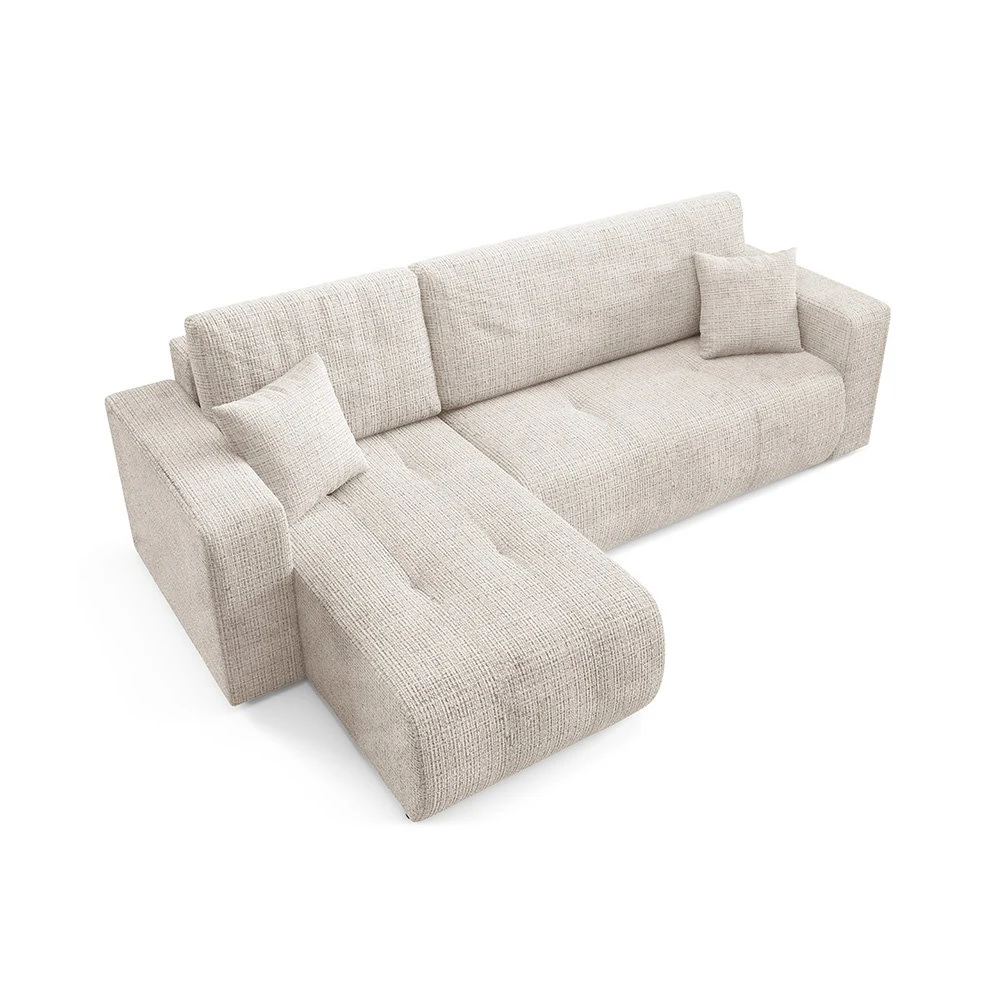 Canapé d'angle moderne et élégant, au design épuré, recouvert d'un tissu texturé pour un confort optimal. Idéal pour sublimer votre salon avec une touche de sophistication.
