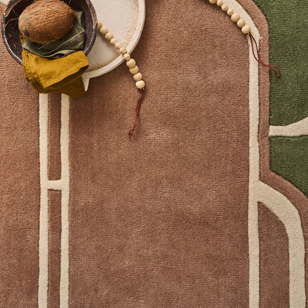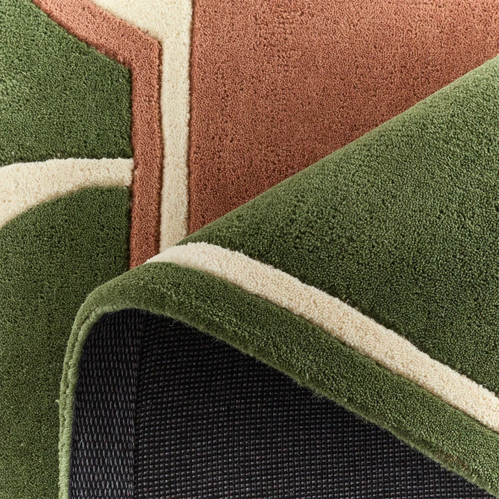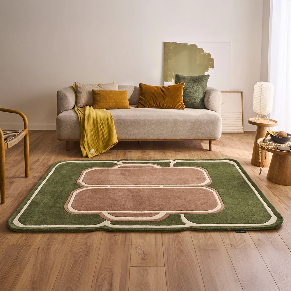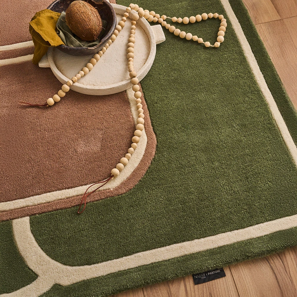 Ses teintes de vert profond et de marron chaud évoquent la fraîcheur de la nature et la stabilité de la terre, invitant à la détente et à la sérénité. Placé dans un salon, une chambre ou un espace de lecture, ce tapis devient un élément central qui habille la pièce avec douceur et raffinement.