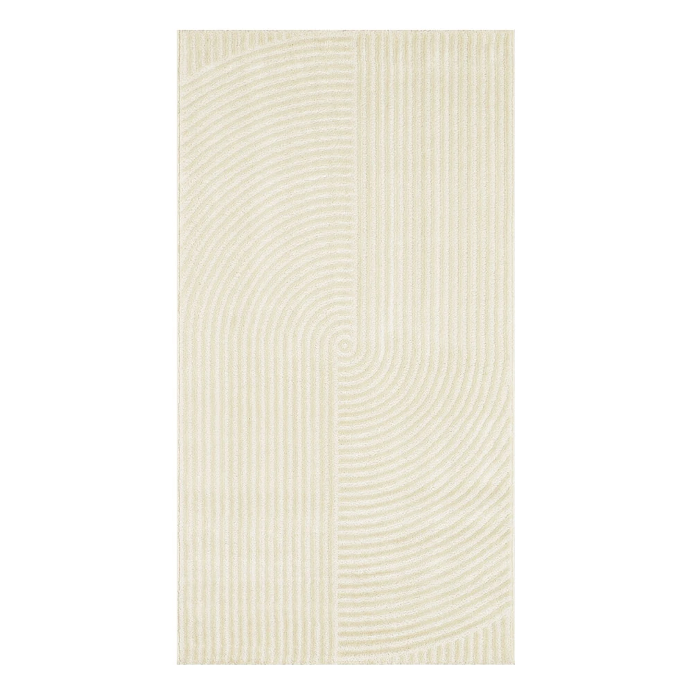Le tapis de salon Bianca est le choix idéal pour ajouter une touche de sophistication à votre espace de vie. Doté d'une couleur unie crème, il se marie facilement avec tout type de décoration intérieure. Les motifs en forme d'arcs apportent une subtile touche artistique à ce tapis, créant ainsi un équilibre entre modernité et élégance.