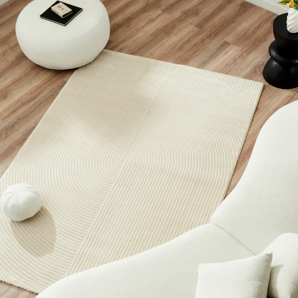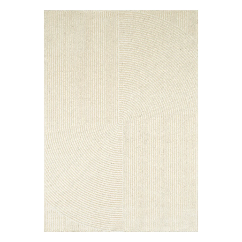 Le tapis de salon Bianca est le choix idéal pour ajouter une touche de sophistication à votre espace de vie. Doté d'une couleur unie crème, il se marie facilement avec tout type de décoration intérieure. Les motifs en forme d'arcs apportent une subtile touche artistique à ce tapis, créant ainsi un équilibre entre modernité et élégance.