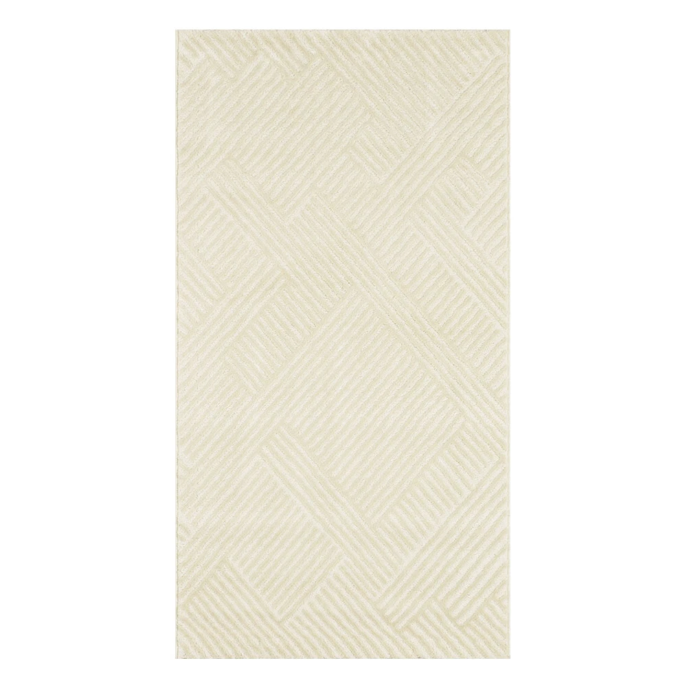 Le tapis de salon Bianca est le choix idéal pour ajouter une touche de sophistication à votre espace de vie. Doté d'une couleur unie crème, il se marie facilement avec tout type de décoration intérieure. Les motifs en forme d'arcs apportent une subtile touche artistique à ce tapis, créant ainsi un équilibre entre modernité et élégance.