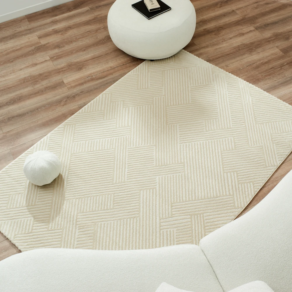 Tapis de salon Bianca : apportez élégance et confort à votre intérieur avec son design crème uni, ses motifs artistiques et sa texture douce effet laineux. Durable, facile d'entretien, idéal pour tous styles de déco.