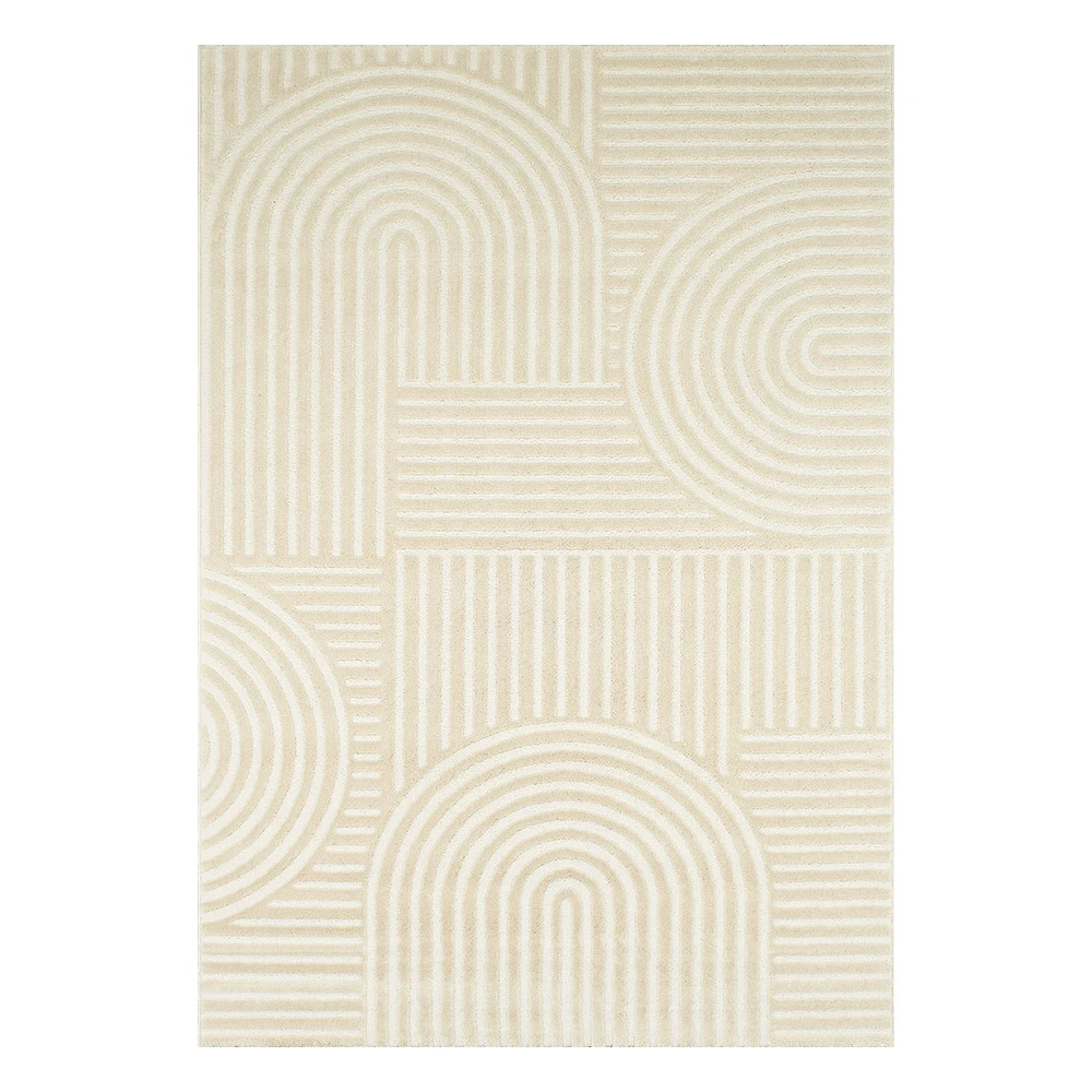Le tapis de salon Bianca est le choix idéal pour ajouter une touche de sophistication à votre espace de vie. Doté d'une couleur unie crème, il se marie facilement avec tout type de décoration intérieure. Les motifs en forme d'arcs apportent une subtile touche artistique à ce tapis, créant ainsi un équilibre entre modernité et élégance.