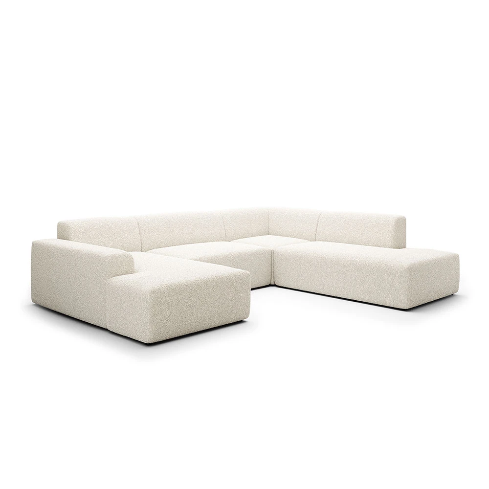 Son revêtement en laine bouclée, doux et texturé, ajoute une dimension tactile unique et du caractère à votre décoration. La teinte écrue lumineuse de ce canapé agrandit visuellement l’espace et s'adapte harmonieusement à divers styles d'intérieur. Conçu pour un confort supérieur, ce canapé panoramique dispose d'une assise spacieuse et de coussins enveloppants, idéaux pour des moments de détente, en solo comme en famille.