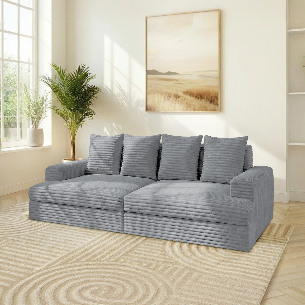 Transformez votre salon avec ce canapé 3 places en velours gris clair , une pièce incontournable qui allie design et confort. Adapté aux intérieurs modernes comme classiques, ce canapé est bien plus qu'un simple meuble : il apporte une touche luxueuse et chaleureuse à votre espace de vie. Le revêtement en velours côtelé gris clair , doux et résistant, ajoute un contraste élégant à toute décoration, tandis que sa teinte illumine votre pièce et offre une ambiance accueillante.