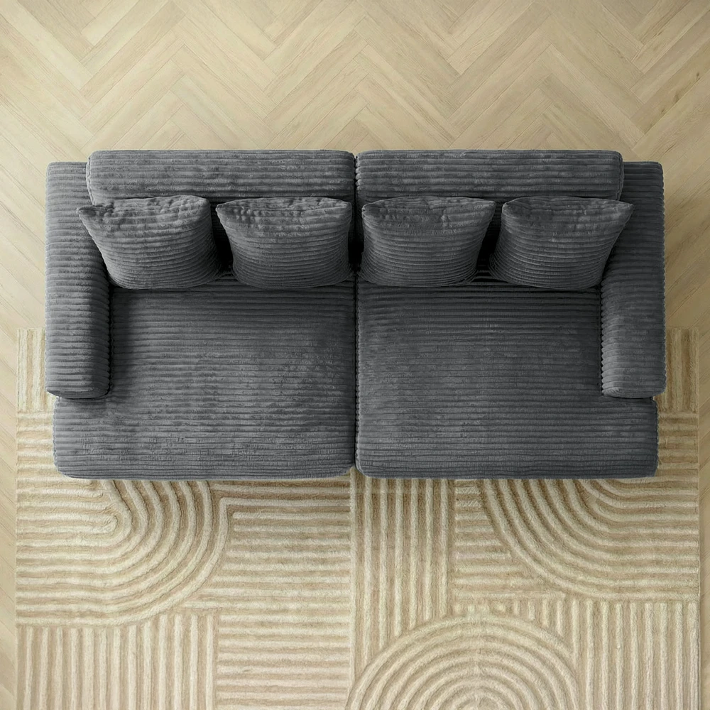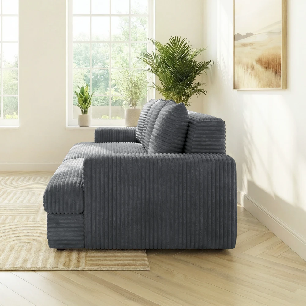 Le revêtement en velours côtelé gris foncé , doux et résistant, ajoute un contraste élégant à toute décoration, tandis que sa teinte illumine votre pièce et offre une ambiance accueillante. Avec son assise moelleuse et son dossier confortable, ce canapé est pensé pour des moments de détente, que ce soit en solo ou en duo. Les lignes épurées et les finitions soignées de ce modèle en font un choix parfait pour ceux qui recherchent à la fois un style intemporel et un confort supérieur.