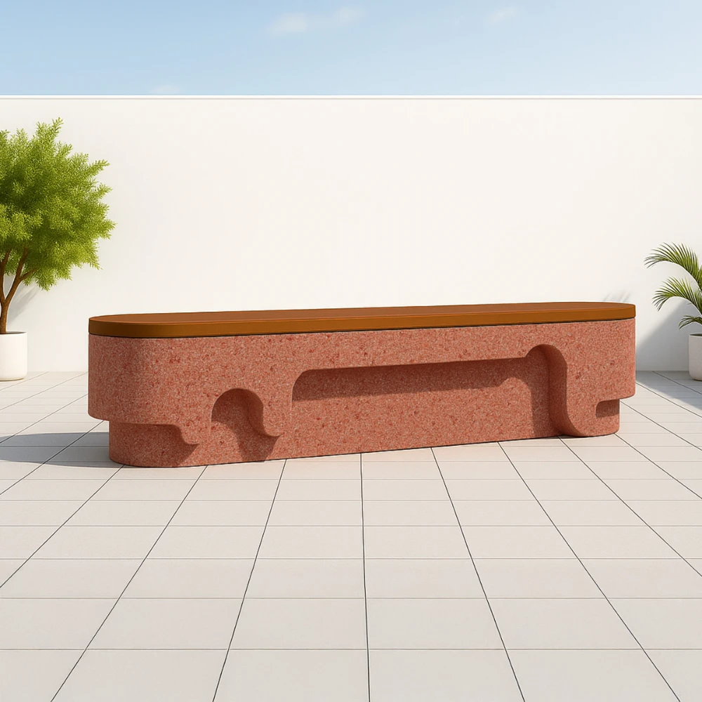 Banc élégant en bois et pierre naturelle. Ce banc élégant apporte une touche esthétique à tout espace grâce à son design moderne. Fabriqué à partir d'un parfait mélange de bois et de pierre naturelle, il est sublimé par des formes circulaires en relief.