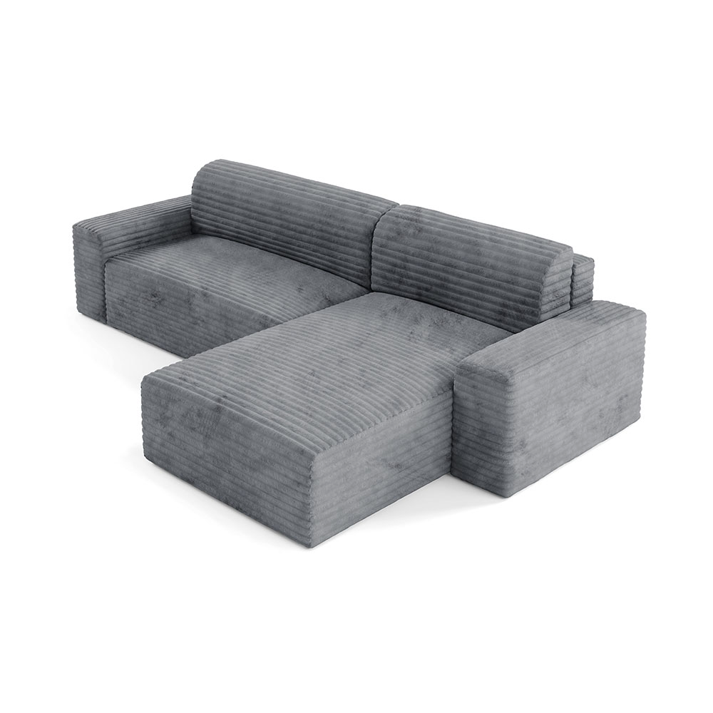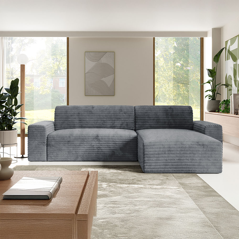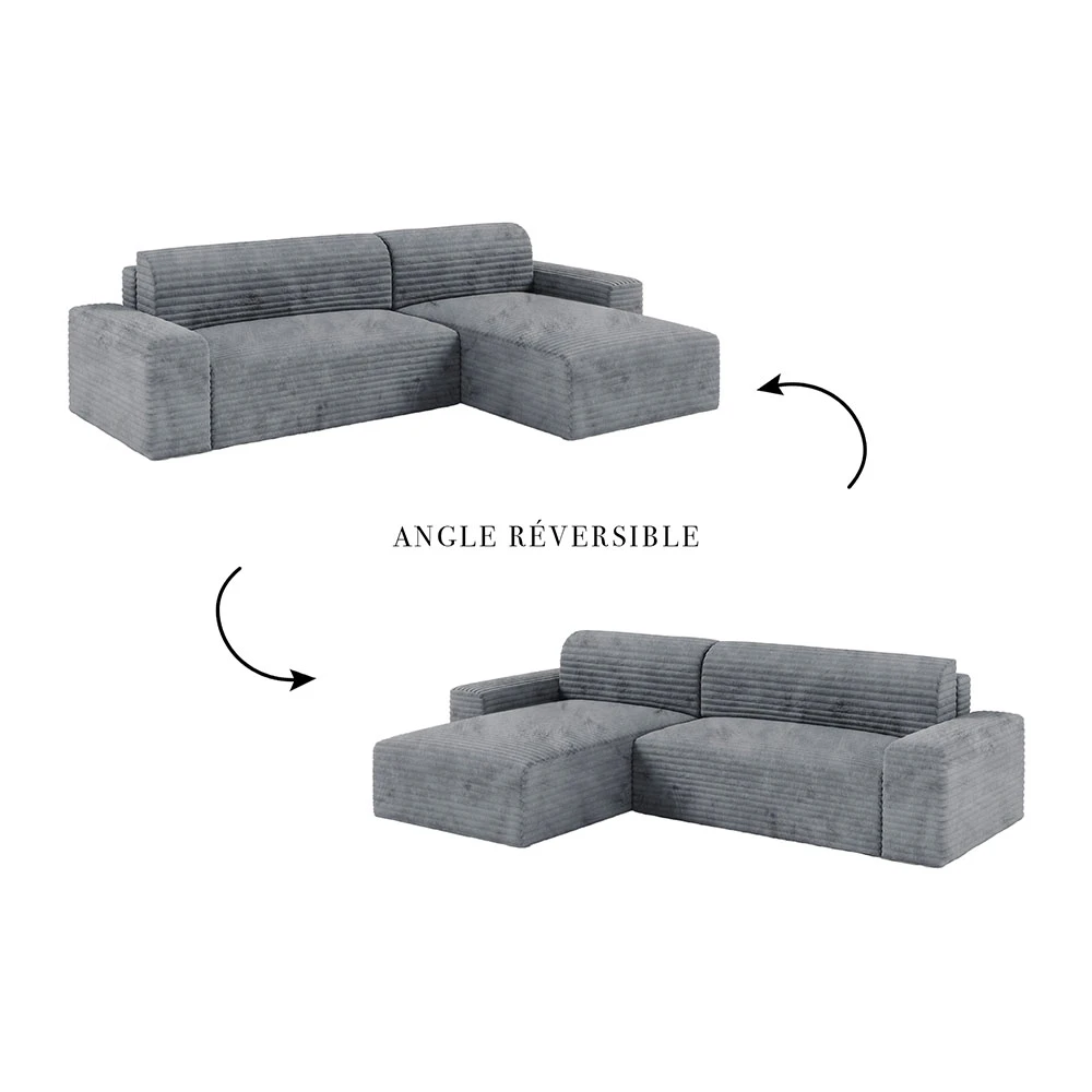 Transformez votre salon avec ce canapé d'angle convertible en velours côtelé gris, une pièce maîtresse qui combine design contemporain, confort supérieur et durabilité. Parfait pour les grands espaces et les intérieurs élégants, ce canapé d'angle devient rapidement le point central de votre pièce de vie, ajoutant une touche de sophistication et de chaleur.