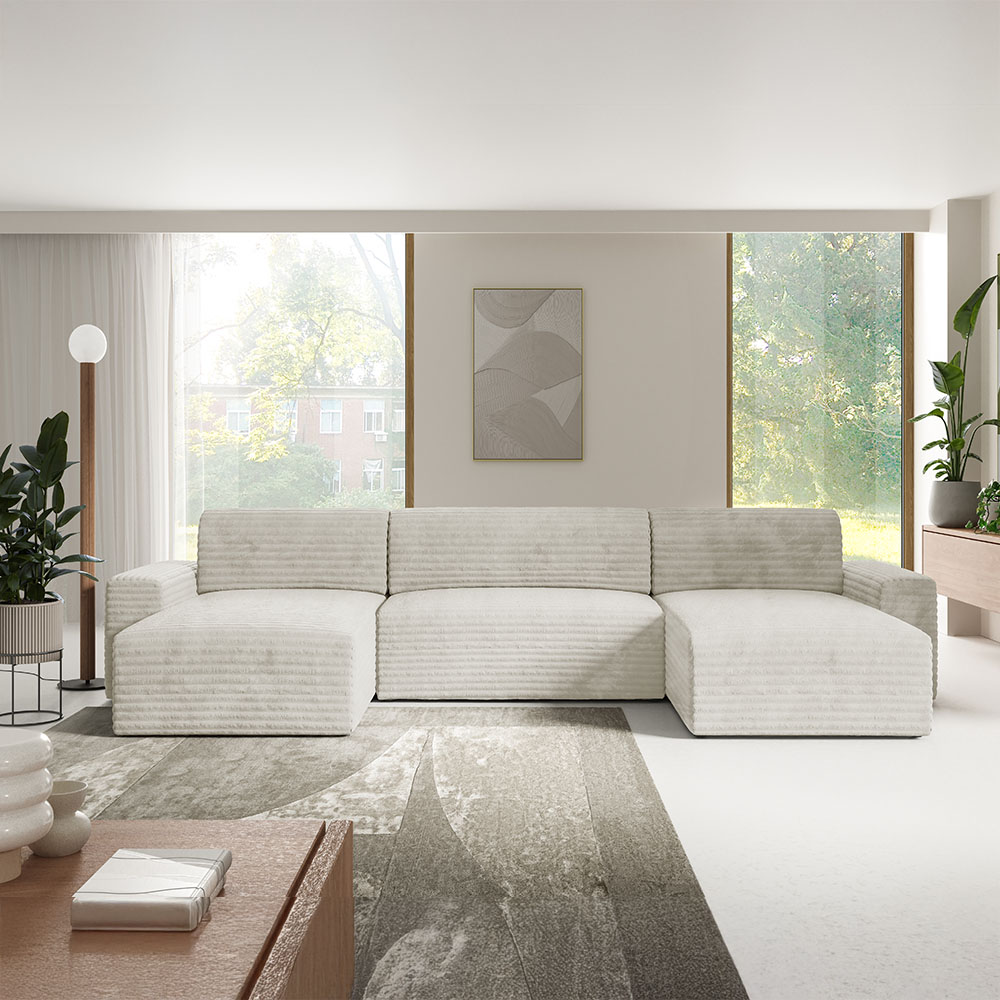 Transformez votre salon avec ce canapé panoramique convertible en velours côtelé écru, une pièce maîtresse qui combine design contemporain, confort supérieur et durabilité. Parfait pour les grands espaces et les intérieurs élégants, ce canapé panoramique devient rapidement le point central de votre pièce de vie, apportant une touche de sophistication et de chaleur.