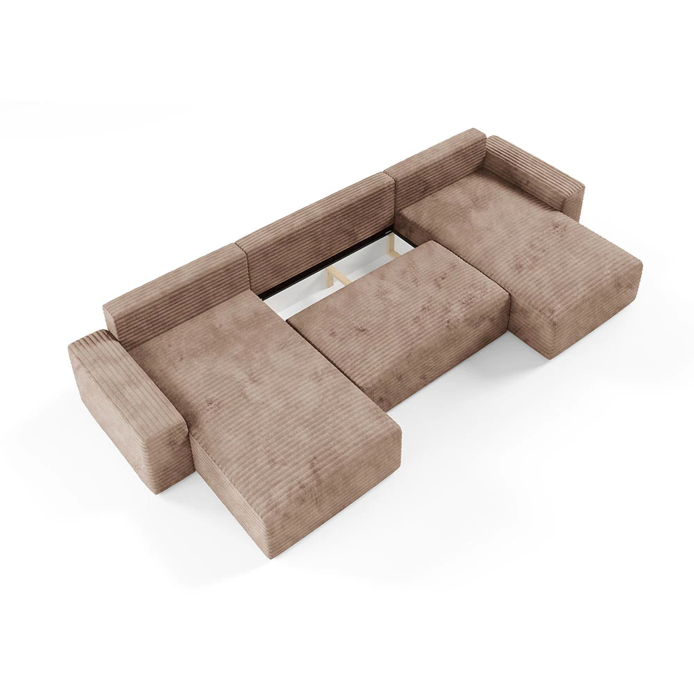 Canapé panoramique convertible avec coffre de rangement en velours côtelé taupe – Confort et Élégance pour votre Salon