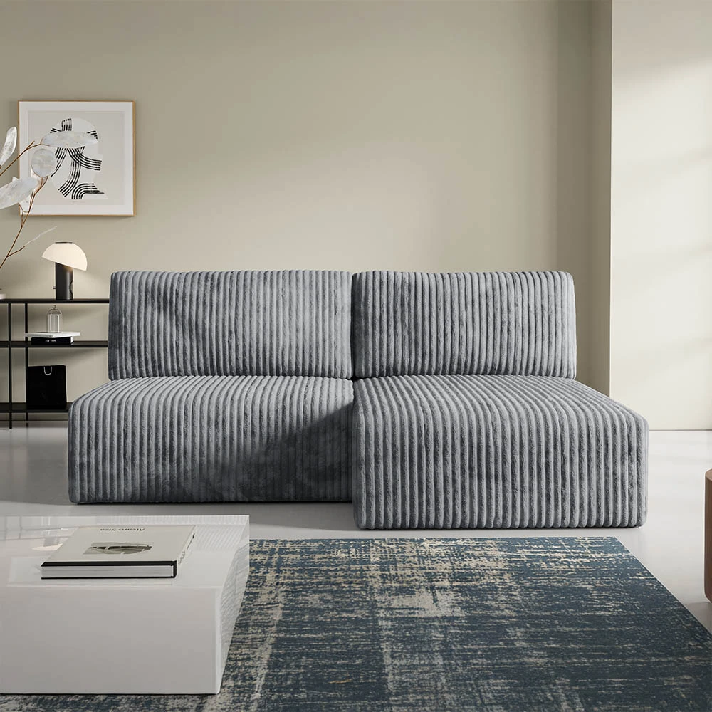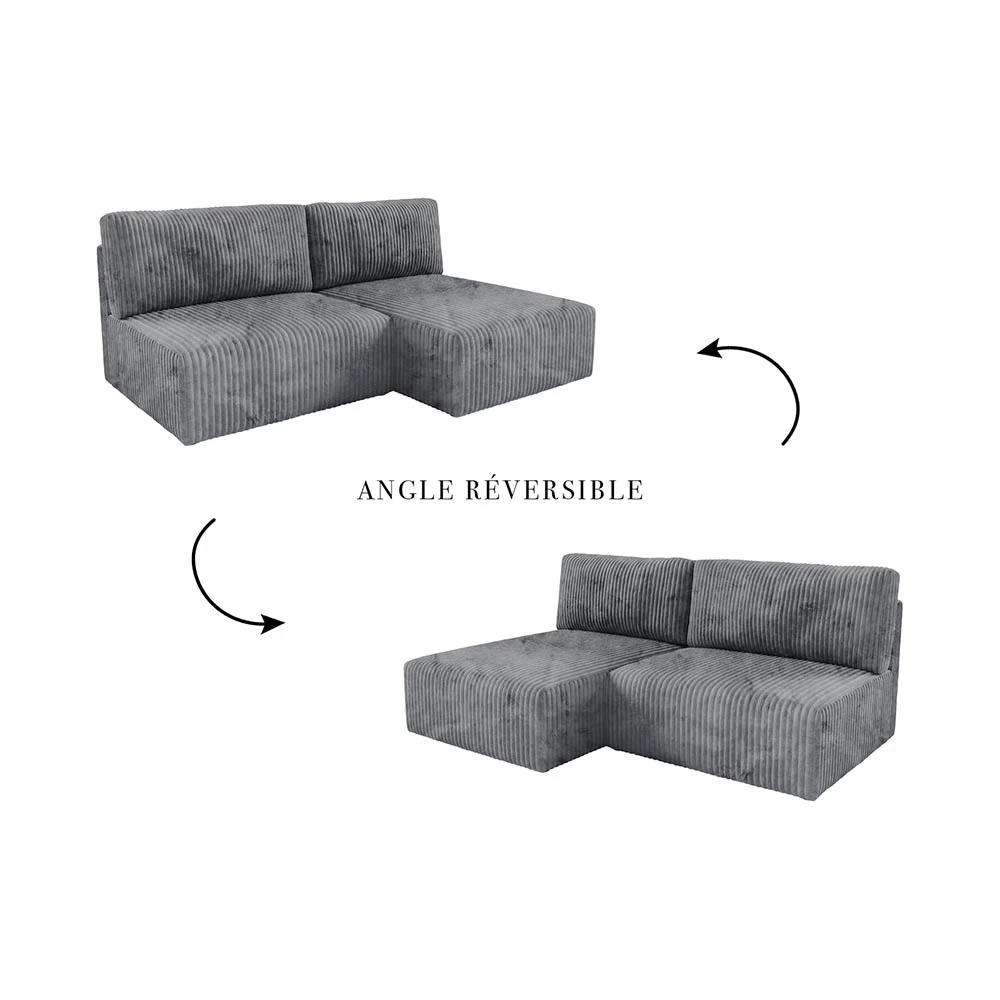 Transformez votre salon avec ce canapé d'angle convertible et modulable en velours côtelé gris, une pièce incontournable qui allie design et confort. Adapté aux intérieurs modernes comme classiques, ce canapé est bien plus qu'un simple meuble : il apporte une touche luxueuse et chaleureuse à votre espace de vie.