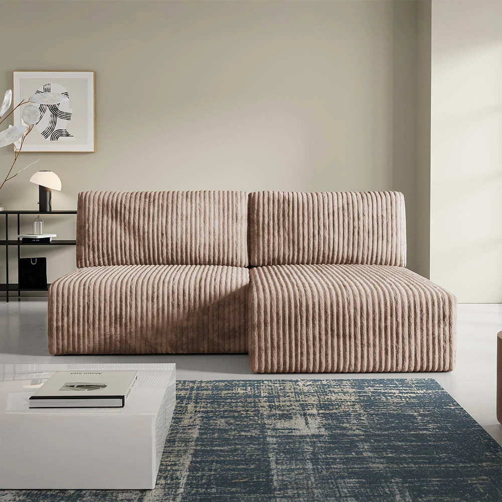 Canapé d'angle convertible et modulable en velours côtelé taupe– Confort et Élégance pour votre Salon