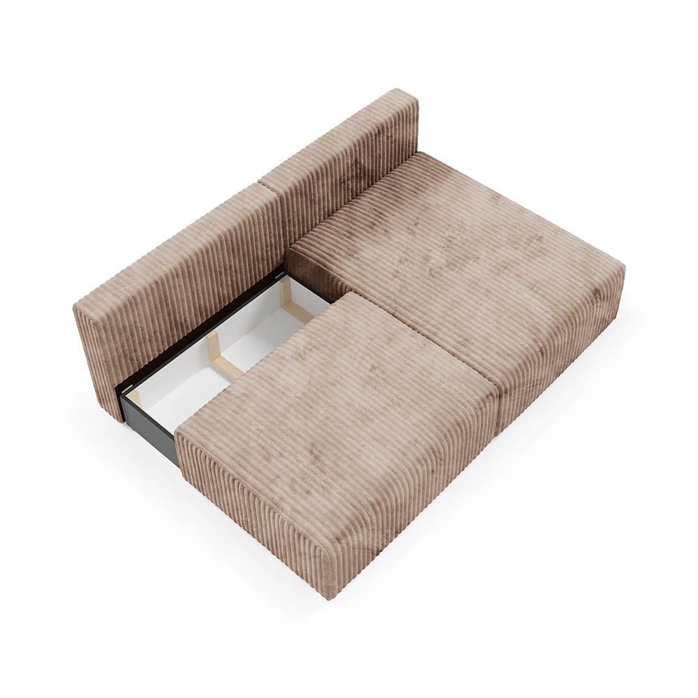 Le revêtement en velours côtelé, doux et résistant, ajoute un contraste élégant à toute décoration, tandis que sa teinte illumine votre pièce et crée une ambiance accueillante. Avec son assise moelleuse et son dossier confortable, ce canapé est pensé pour des moments de détente, que ce soit en solo ou en duo. De plus, il se transforme facilement en couchage d’appoint pour accueillir vos invités en toute simplicité. Son petit coffre de rangement intégré sous l’assise est parfait pour organiser vos affaires et garder votre espace de vie bien ordonné.