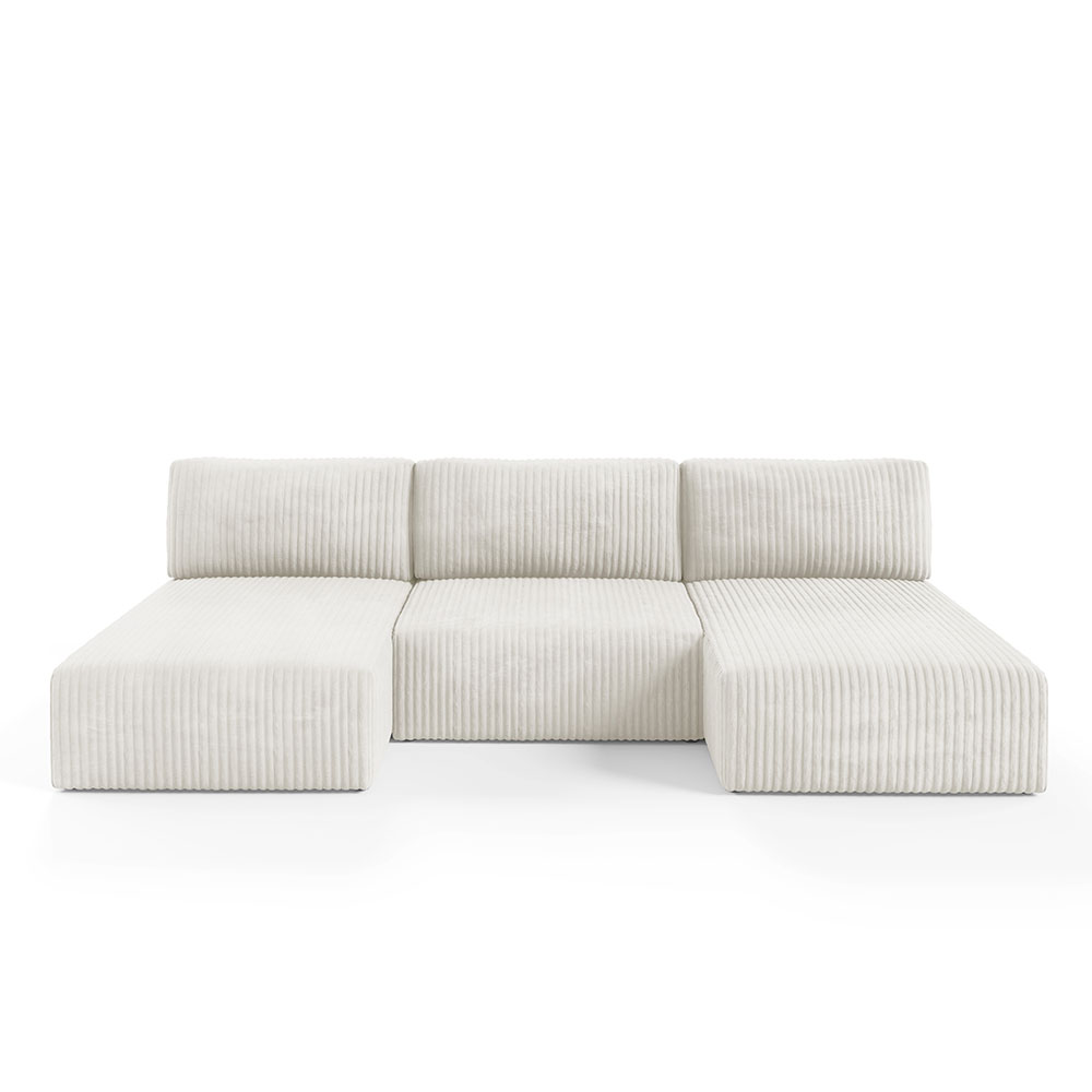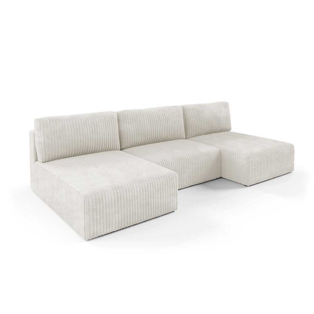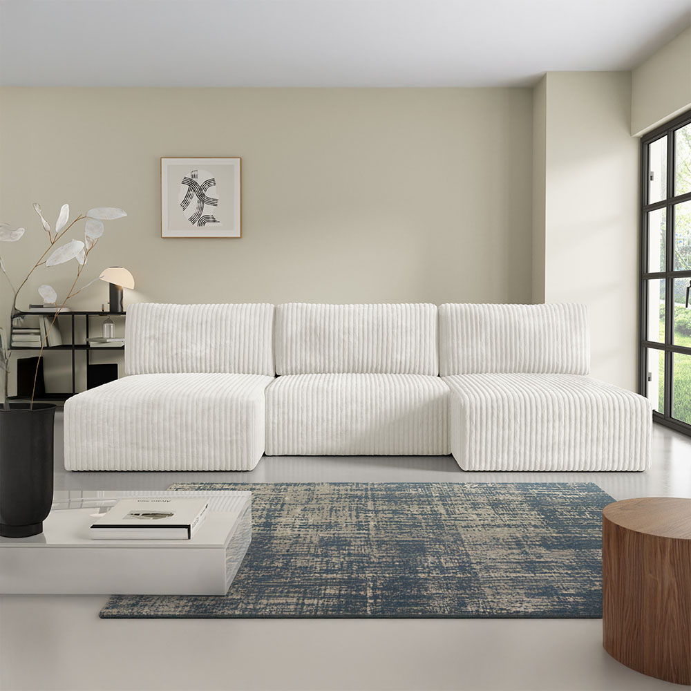 Canapé panoramique convertible en velours côtelé beige– Confort et Élégance pour votre Salon