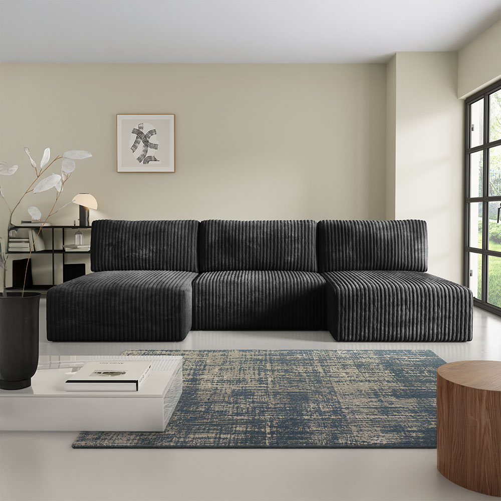 Transformez votre salon avec ce canapé panoramique convertible en velours côtelé gris foncé, une pièce maîtresse qui combine design contemporain, confort supérieur et durabilité. Parfait pour les grands espaces et les intérieurs élégants, ce canapé panoramique devient rapidement le point central de votre pièce de vie, apportant une touche de sophistication et de chaleur.