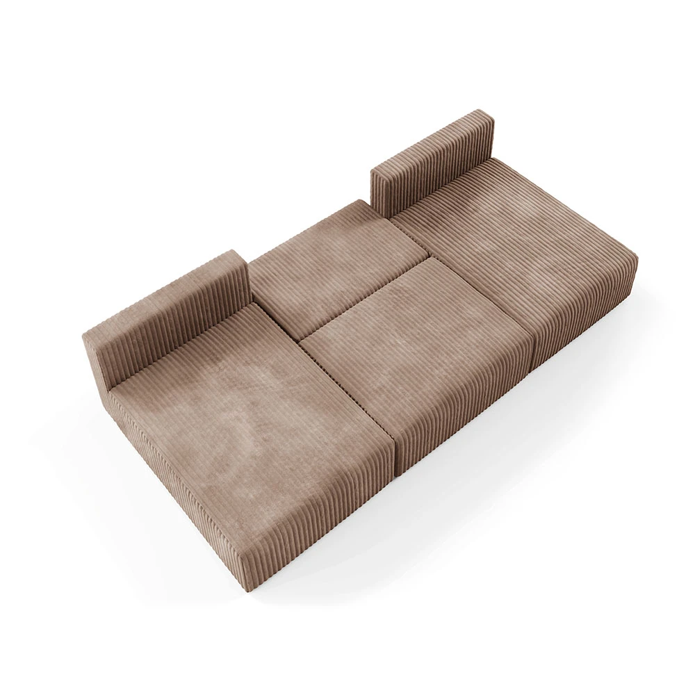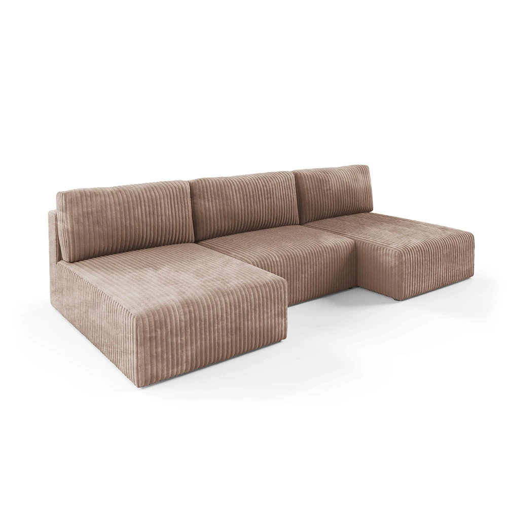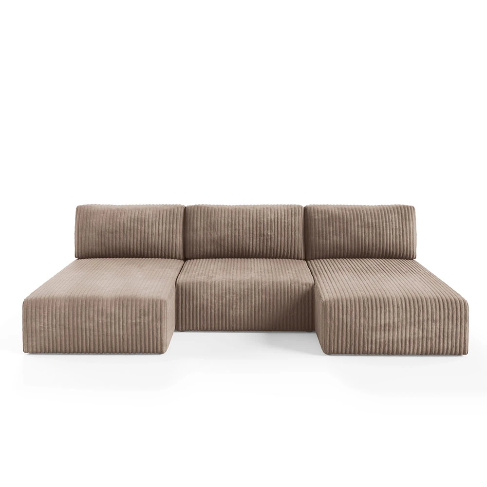 Canapé panoramique convertible en velours côtelé taupe– Confort et Élégance pour votre Salon