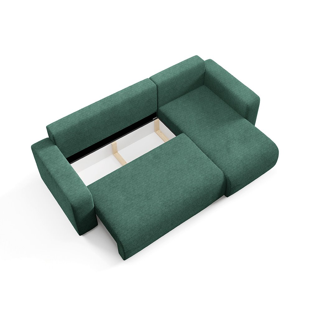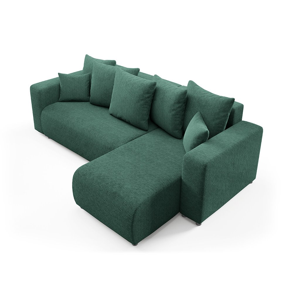 Apportez une touche de douceur et de modernité à votre salon avec ce canapé d'angle en tissu vert. Avec son design élégant et sa texture unique, il s'harmonise facilement avec tout type d'intérieur, qu'il soit contemporain, minimaliste ou chaleureux.