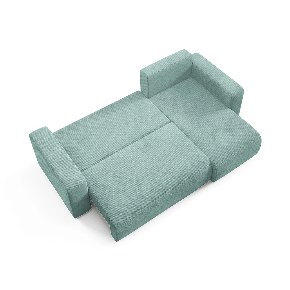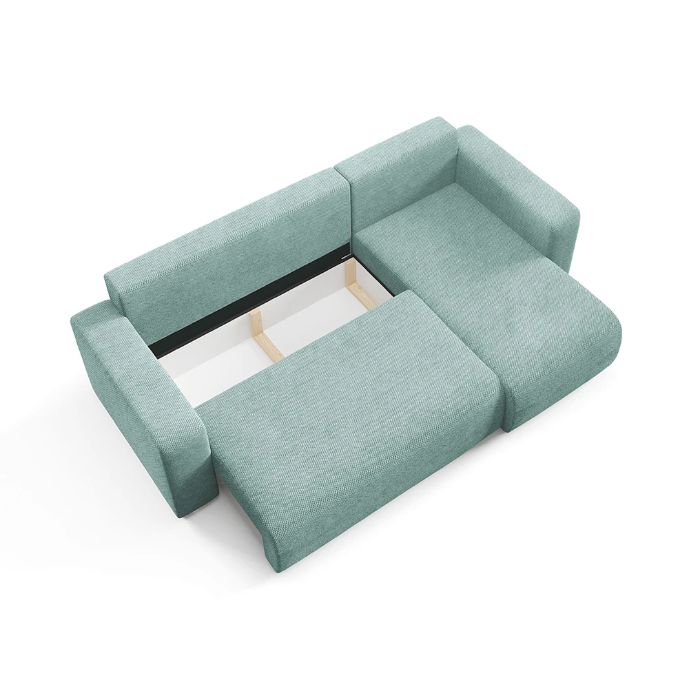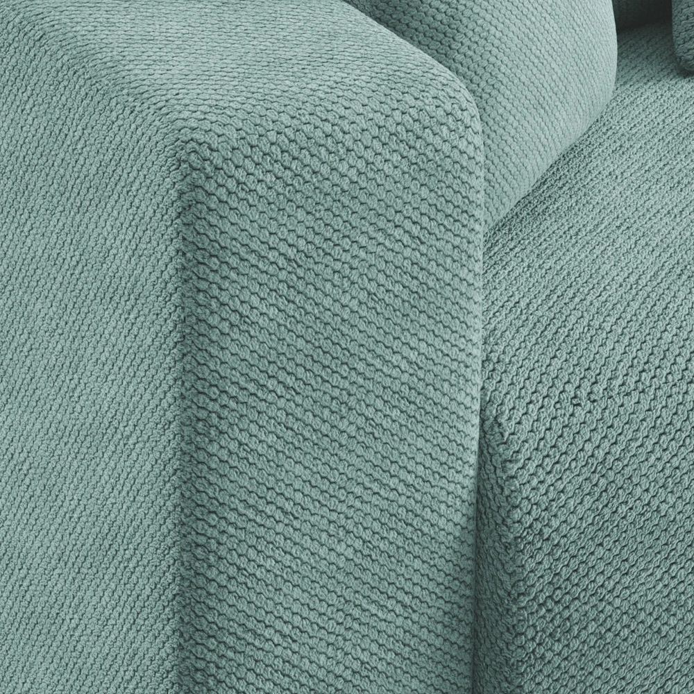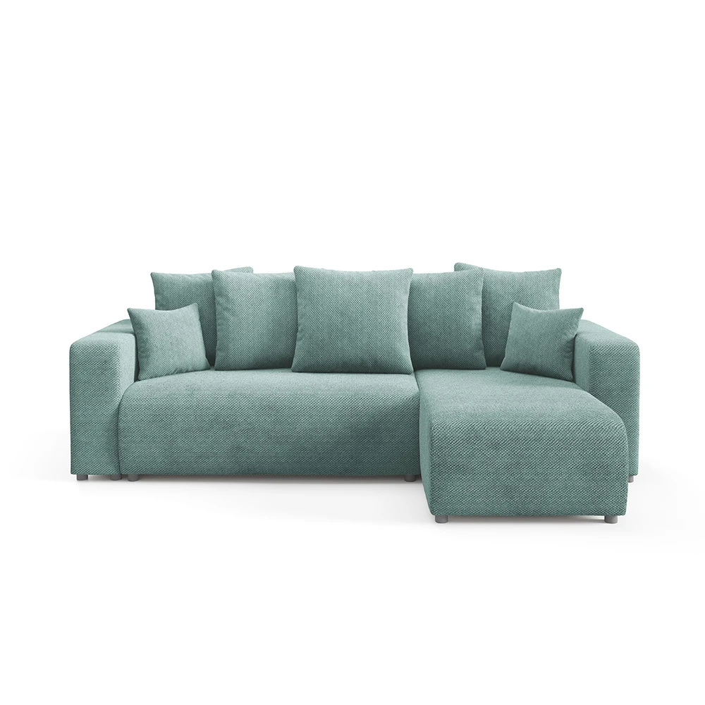 Canapé d'angle en tissu vert d'eau : design épuré, méridienne confortable et adaptable à tous les intérieurs