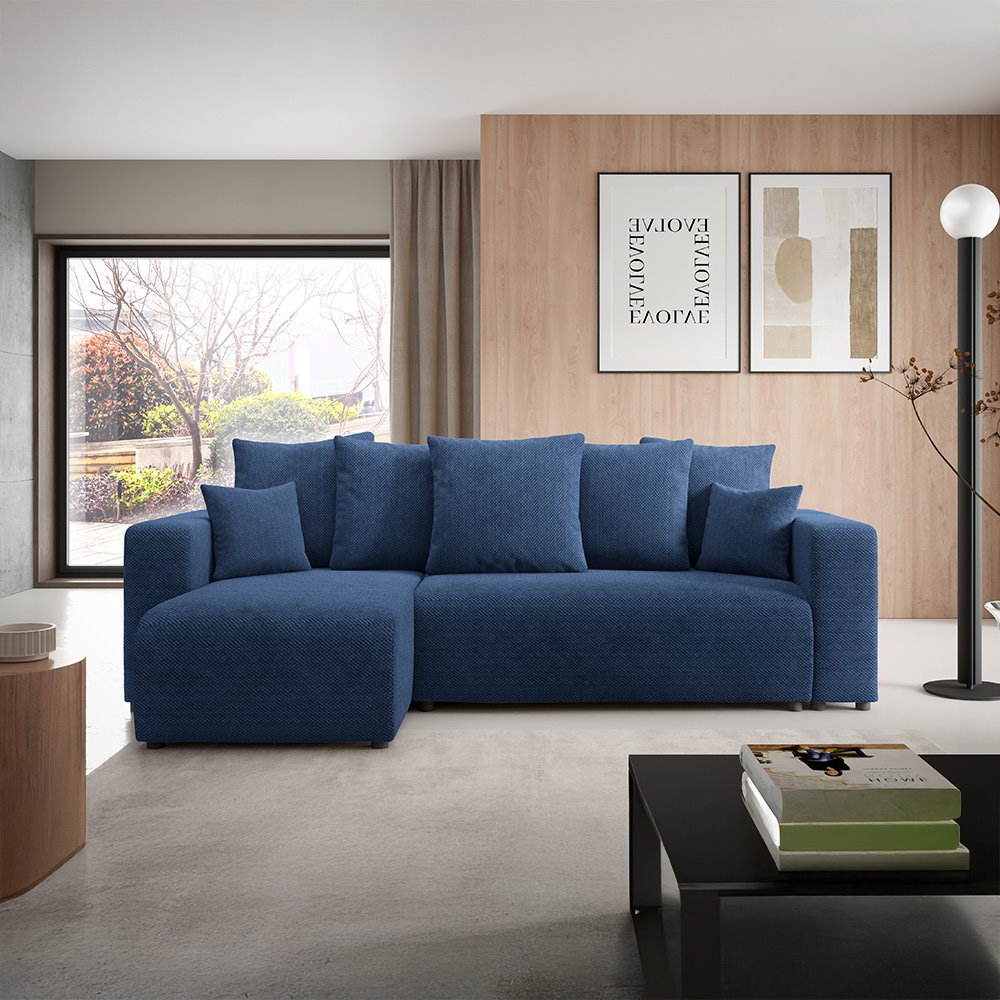 Apportez une touche de douceur et de modernité à votre salon avec ce canapé d'angle en tissu bleu. Avec son design élégant et sa texture unique, il s'harmonise facilement avec tout type d'intérieur, qu'il soit contemporain, minimaliste ou chaleureux.