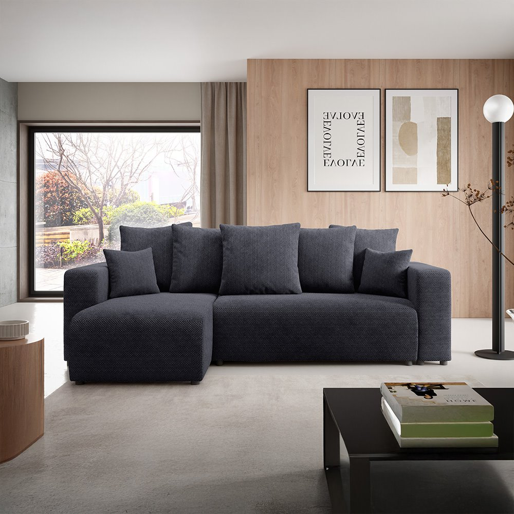 Apportez une touche de douceur et de modernité à votre salon avec ce canapé d'angle en tissu noir. Avec son design élégant et sa texture unique, il s'harmonise facilement avec tout type d'intérieur, qu'il soit contemporain, minimaliste ou chaleureux.