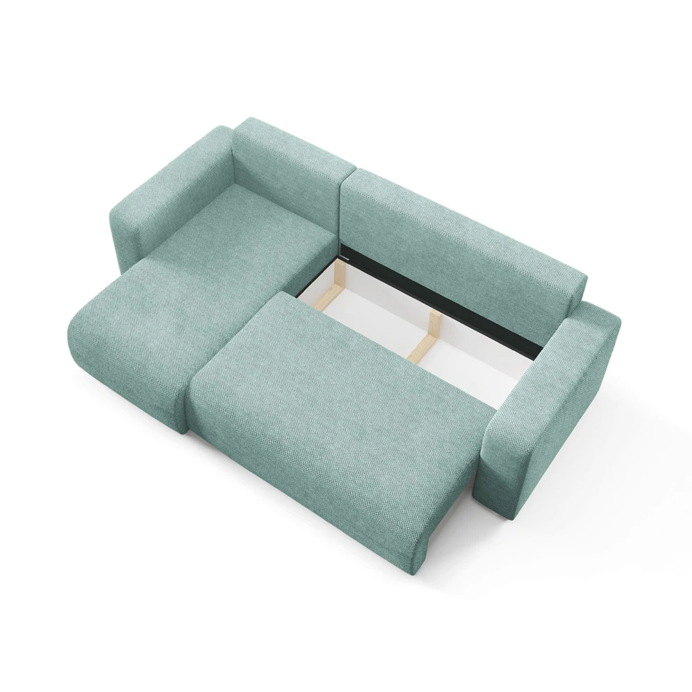 Canapé d'angle en tissu vert d'eau : design épuré, méridienne confortable et adaptable à tous les intérieurs