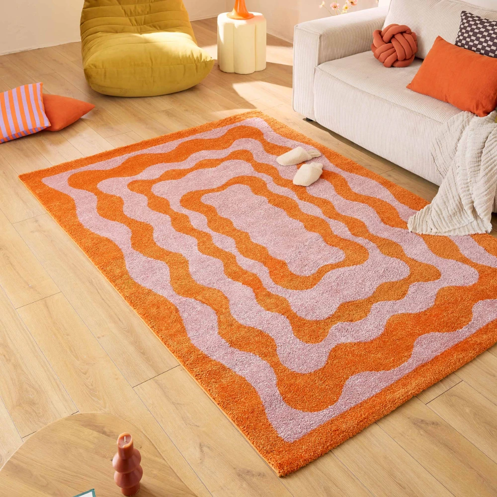 Ajoutez une touche rétro et chaleureuse à votre intérieur avec le tapis Groovy Collection - Orange, alliant confort, douceur et durabilité pour un style unique.