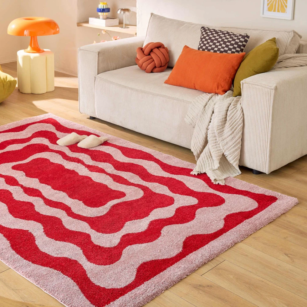 Ajoutez une touche rétro et chaleureuse à votre intérieur avec le tapis Groovy Collection - Rouge, alliant confort, douceur et durabilité pour un style unique.