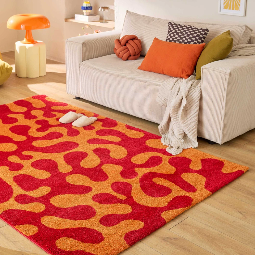 Ajoutez une touche rétro et chaleureuse à votre intérieur avec le tapis Groovy Collection - Rouge, alliant confort, douceur et durabilité pour un style unique.
