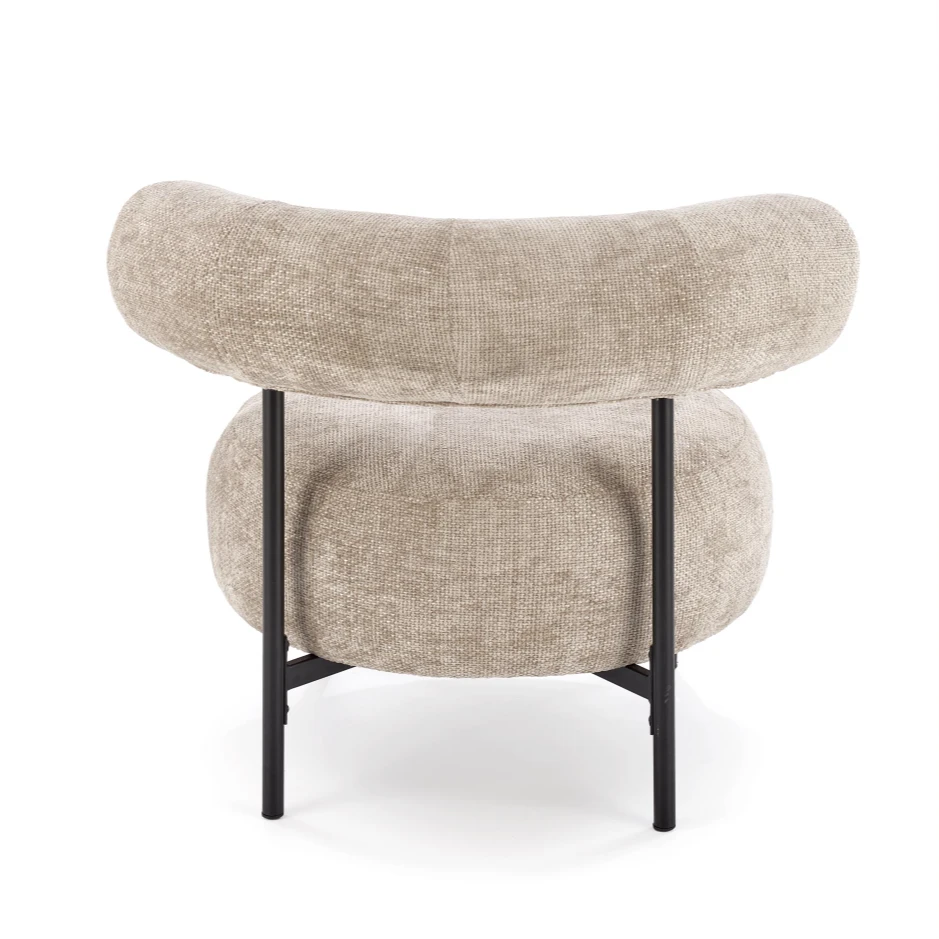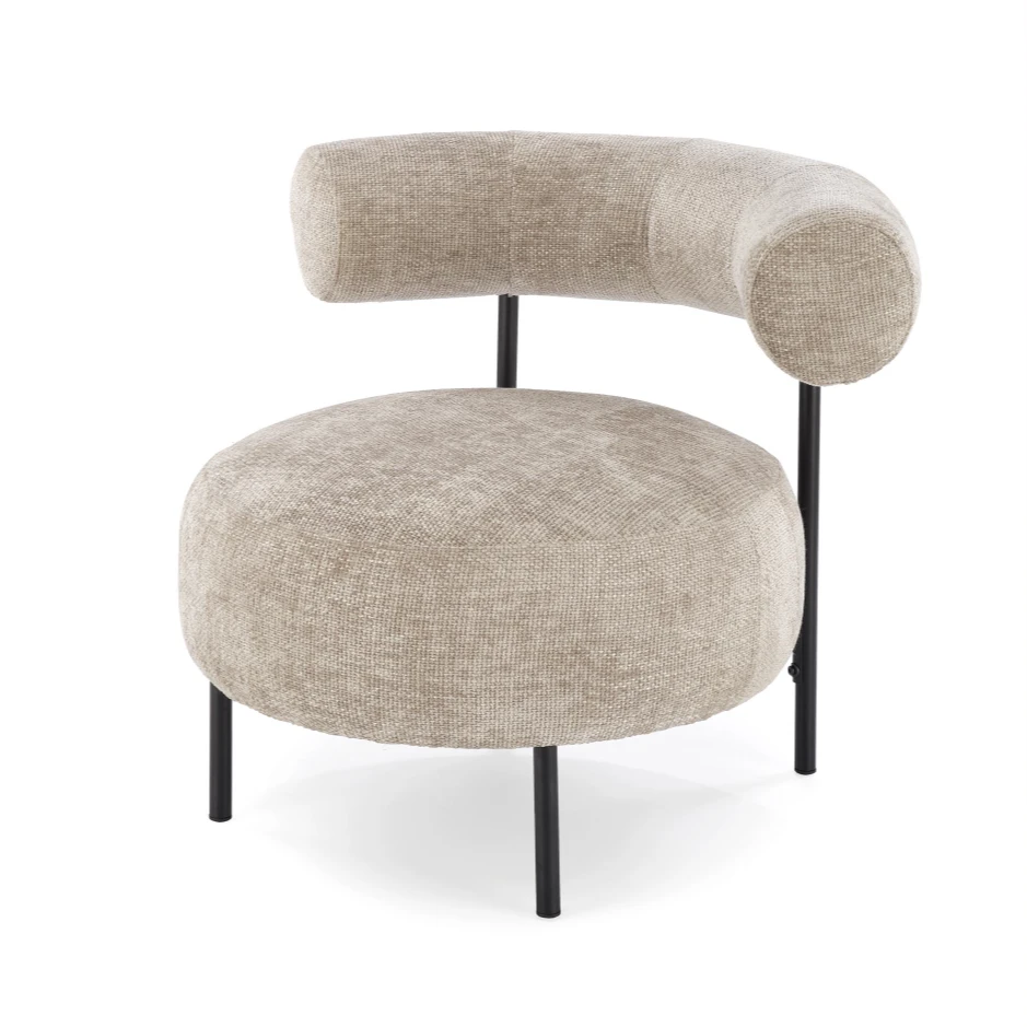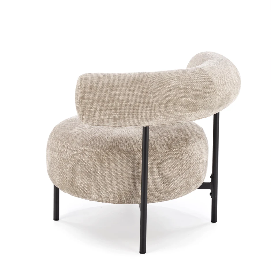 Son allure sculpturale repose sur une base fine en métal noir, pour un équilibre parfait entre légèreté visuelle et stabilité. Ce fauteuil s’intègre aussi bien dans un salon contemporain que dans un coin lecture ou un espace lounge chic.