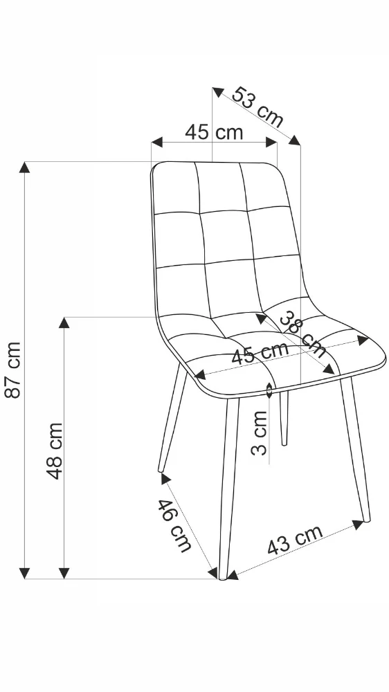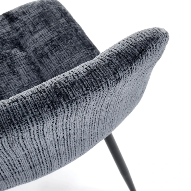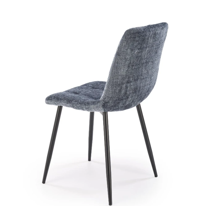 Alliez confort et style avec cette chaise contemporaine au design épuré. Son revêtement en tissu effet velours matelassé offre une assise moelleuse et accueillante, parfaite pour des repas conviviaux, des réunions ou tout simplement des moments de détente. Sa structure repose sur quatre pieds en métal noir légèrement inclinés, apportant une belle stabilité tout en accentuant son allure moderne.