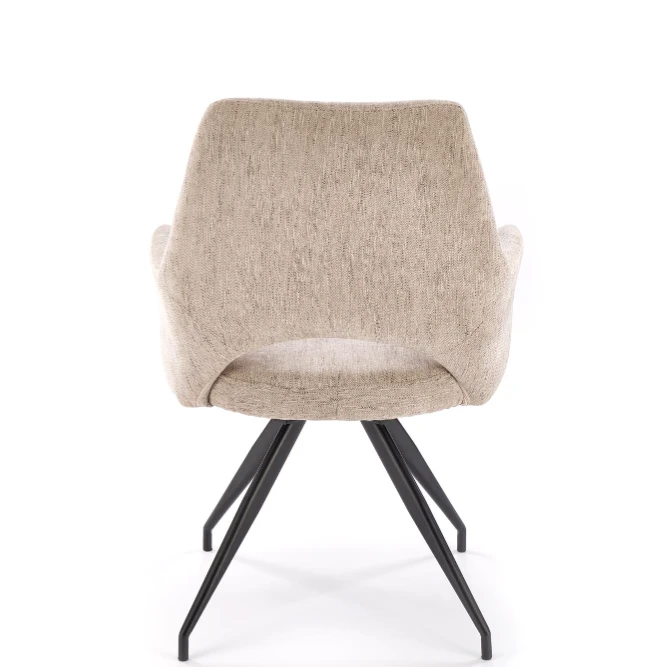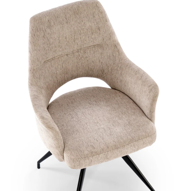Cette chaise pivotante au design contemporain allie confort d’assise et lignes affirmées. Son piétement en métal noir lui donne une touche moderne, parfaite pour sublimer salle à manger ou bureau.