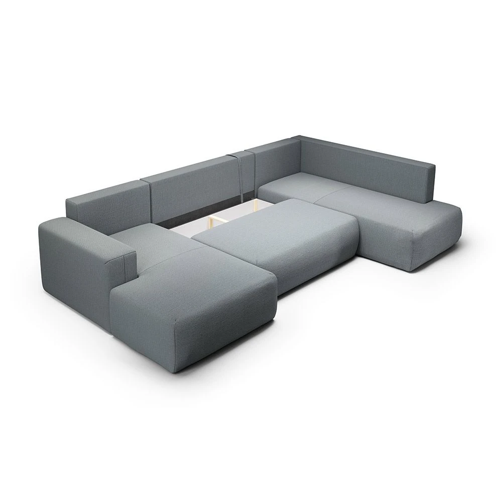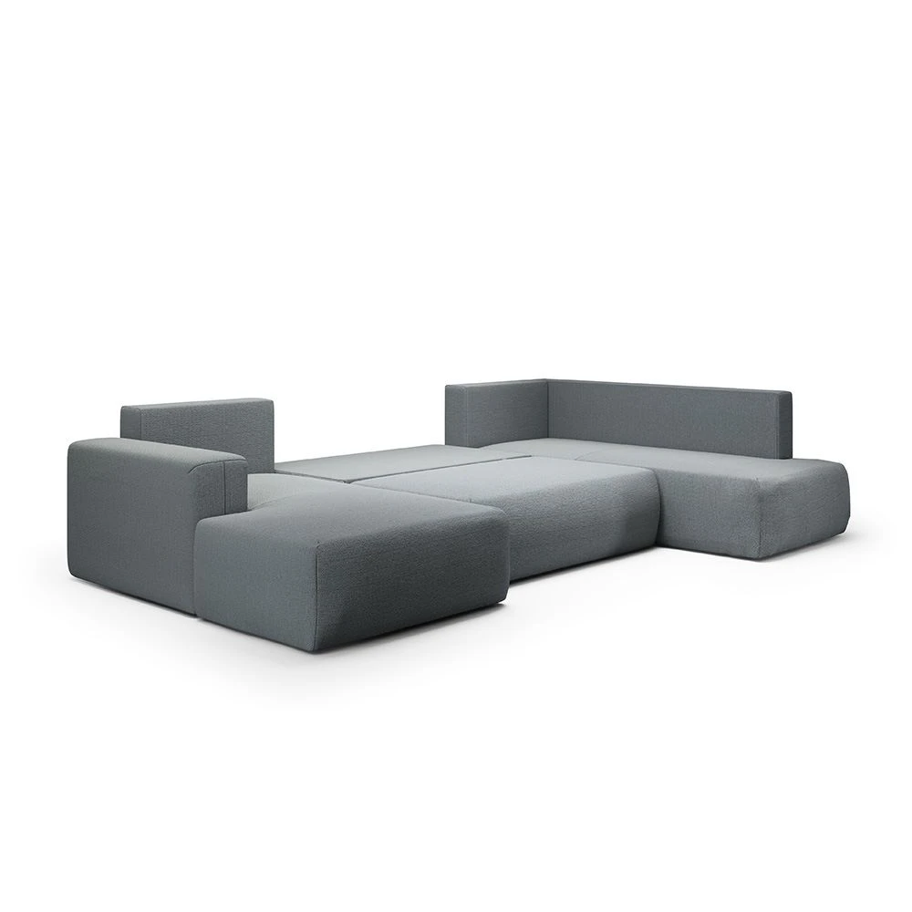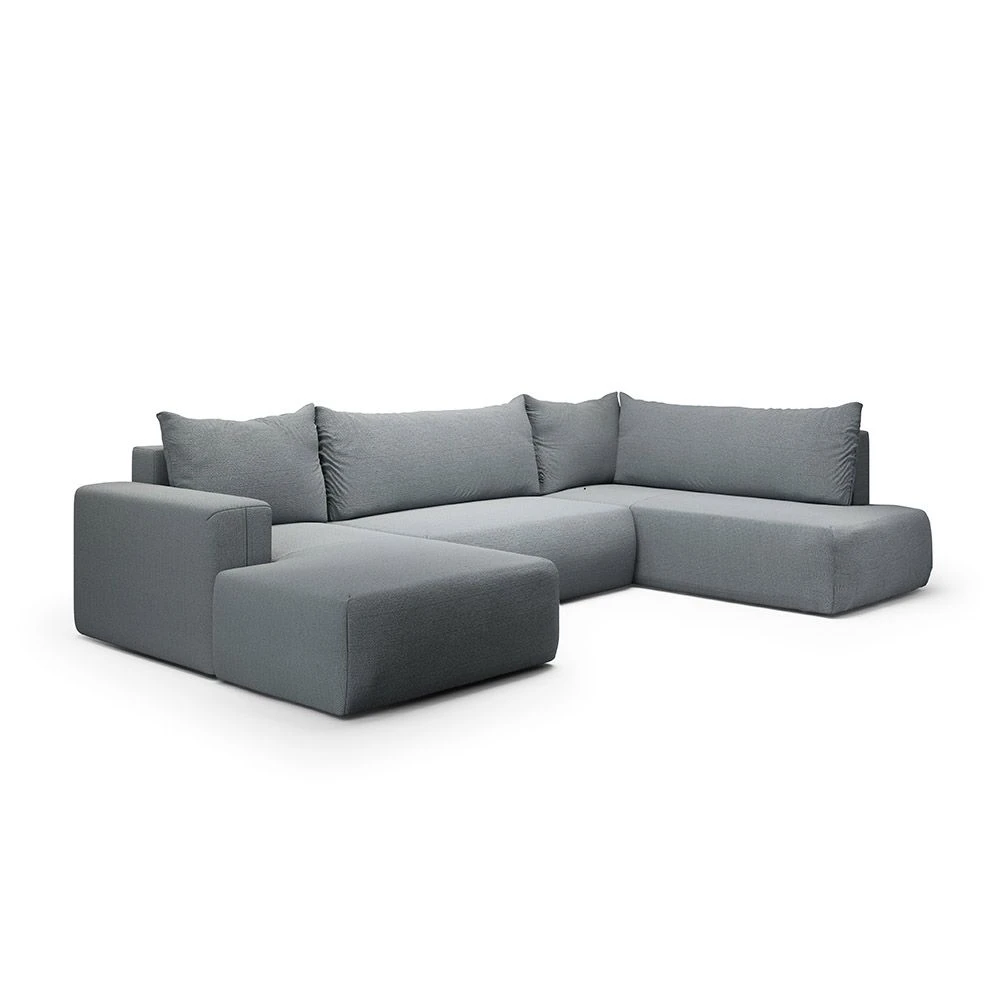 Canapé panoramique droit en tissu gris : design moderne et confort enveloppant pour un salon élégant.