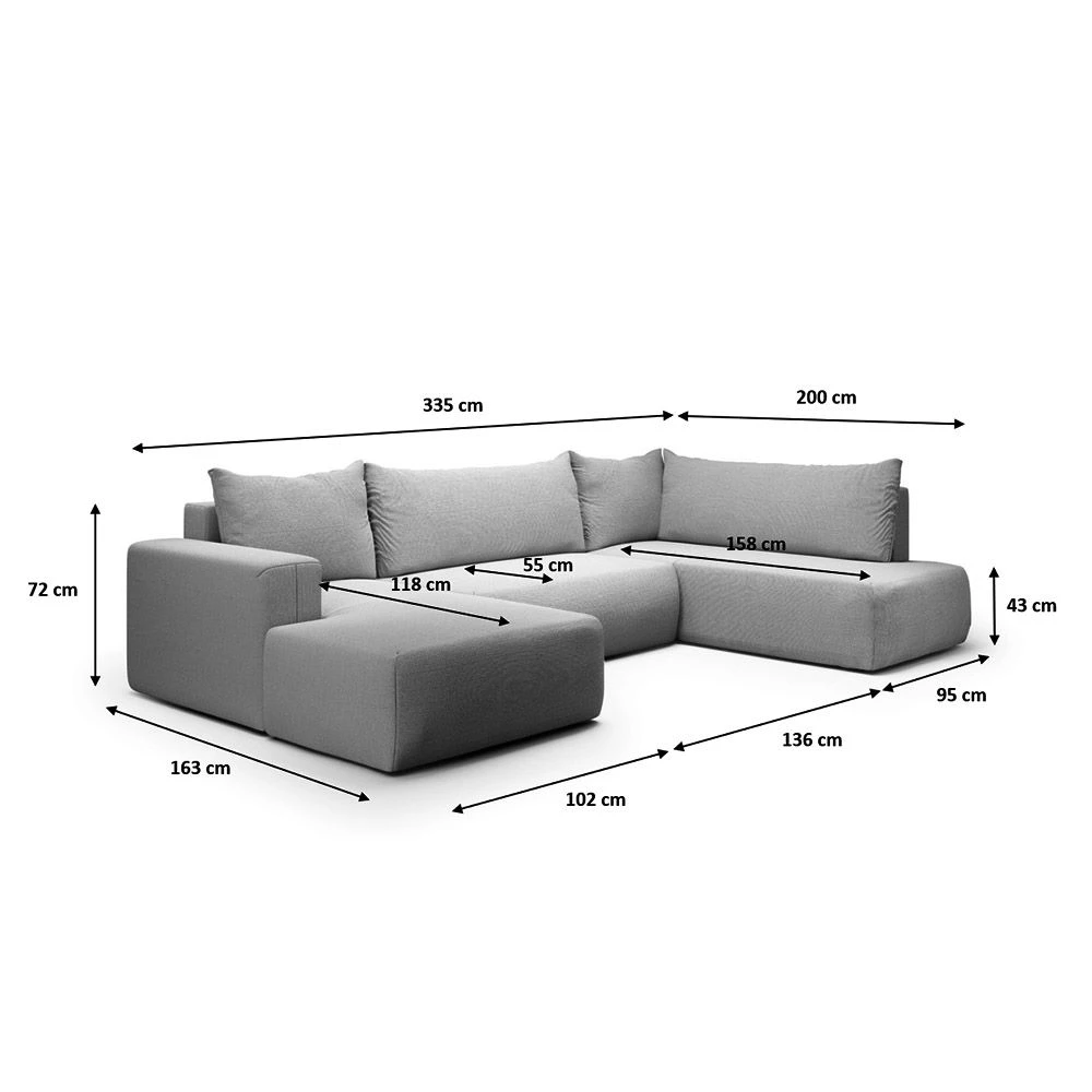 * Les couleurs des produits peuvent légèrement varier selon les paramètres de votre écran (luminosité, contraste, résolution). * Assurez-vous que les colis passent bien dans vos portes et escaliers en vous référant aux dimensions mentionnées sur la fiche produit.- Longueur (cm) 335