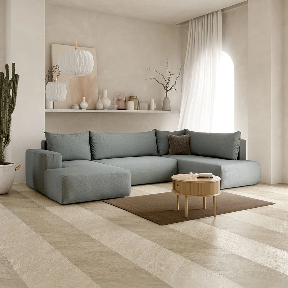 Sublimez votre salon avec ce canapé panoramique d'angle droit en tissu tissu clair , une pièce élégante et cosy qui allie confort et modernité. Grâce à son design minimaliste et ses lignes épurées, ce canapé panoramique s'intègre parfaitement dans les intérieurs contemporains, scandinaves et modernes, créant une atmosphère chaleureuse et accueillante.