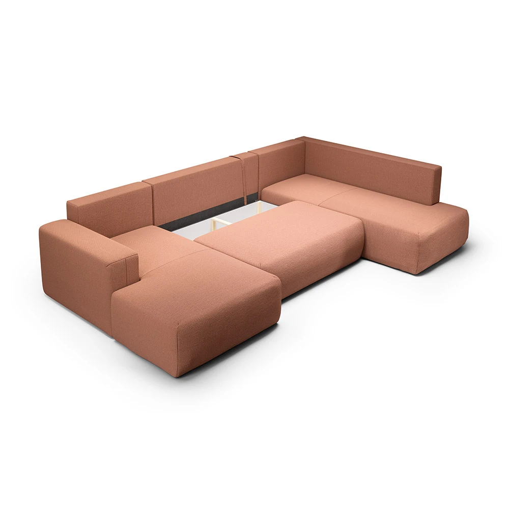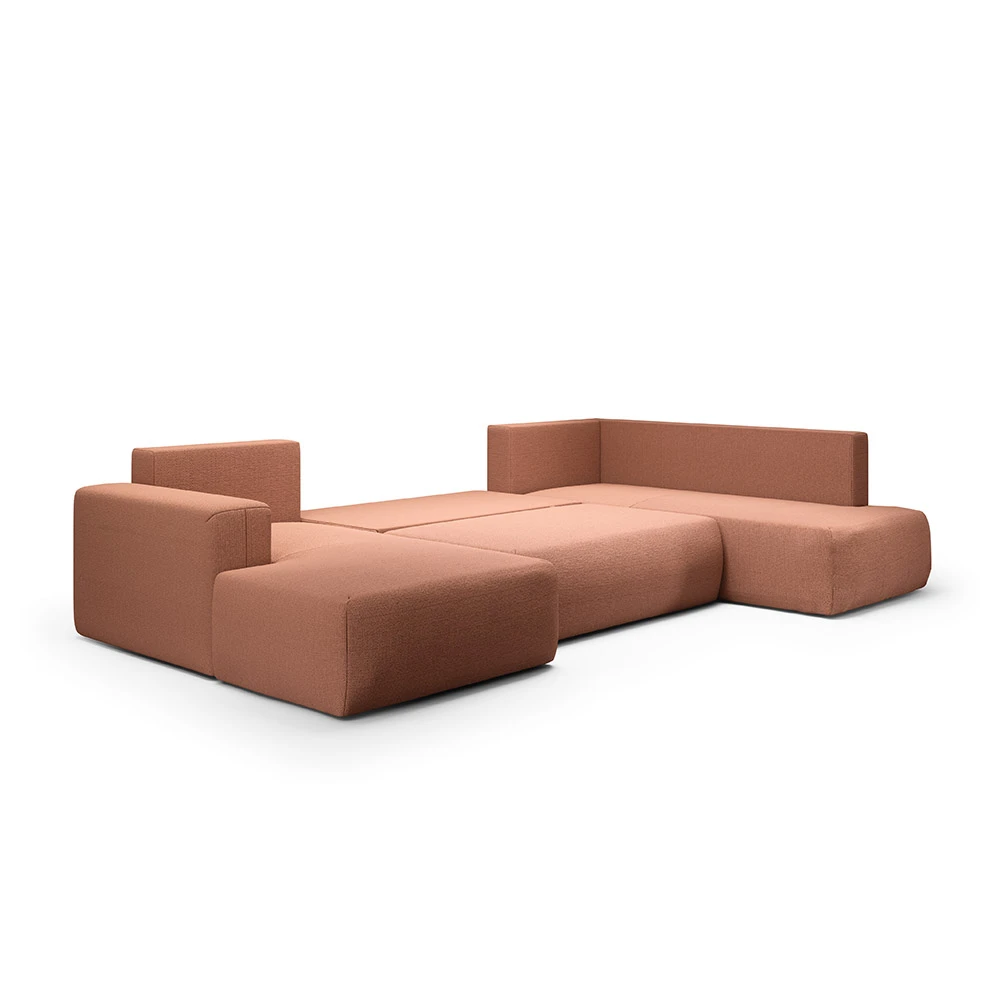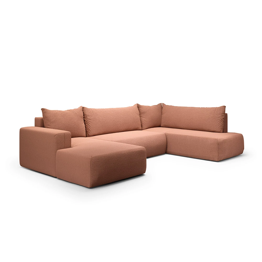 Canapé panoramique droit en tissu orange : design moderne et confort enveloppant pour un salon élégant.