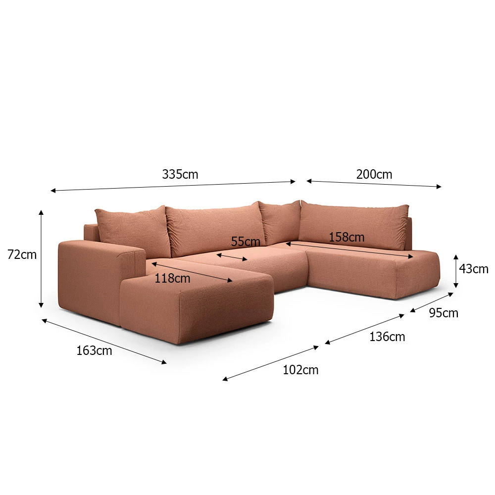 Son revêtement tissu doux et texturé, ajoute une dimension tactile unique et du caractère à votre décoration. La teinte écrue lumineuse de ce canapé agrandit visuellement l’espace et s'adapte harmonieusement à divers styles d'intérieur. Conçu pour un confort supérieur, ce canapé panoramique dispose d'une assise spacieuse et de coussins enveloppants, idéaux pour des moments de détente, en solo comme en famille.