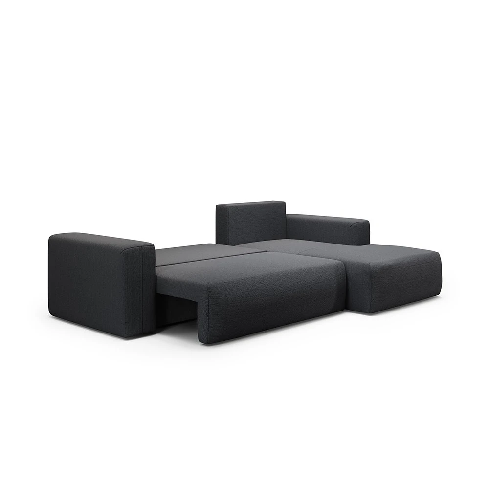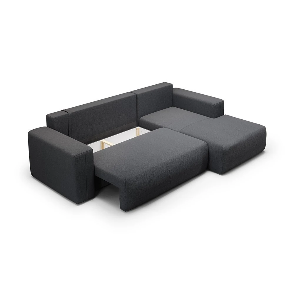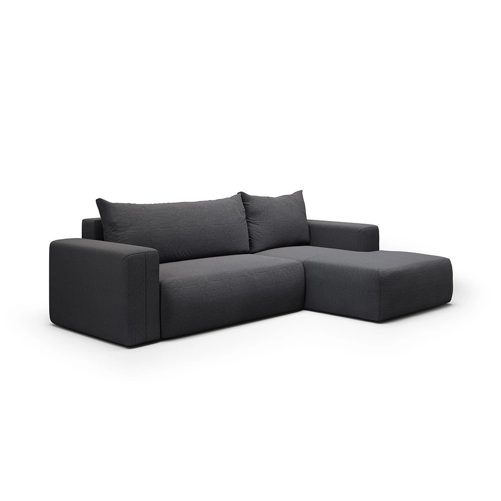 Canapé d'angle en tissu gris foncé alliant design épuré, méridienne modulable et confort optimal, parfait pour tous les intérieurs.