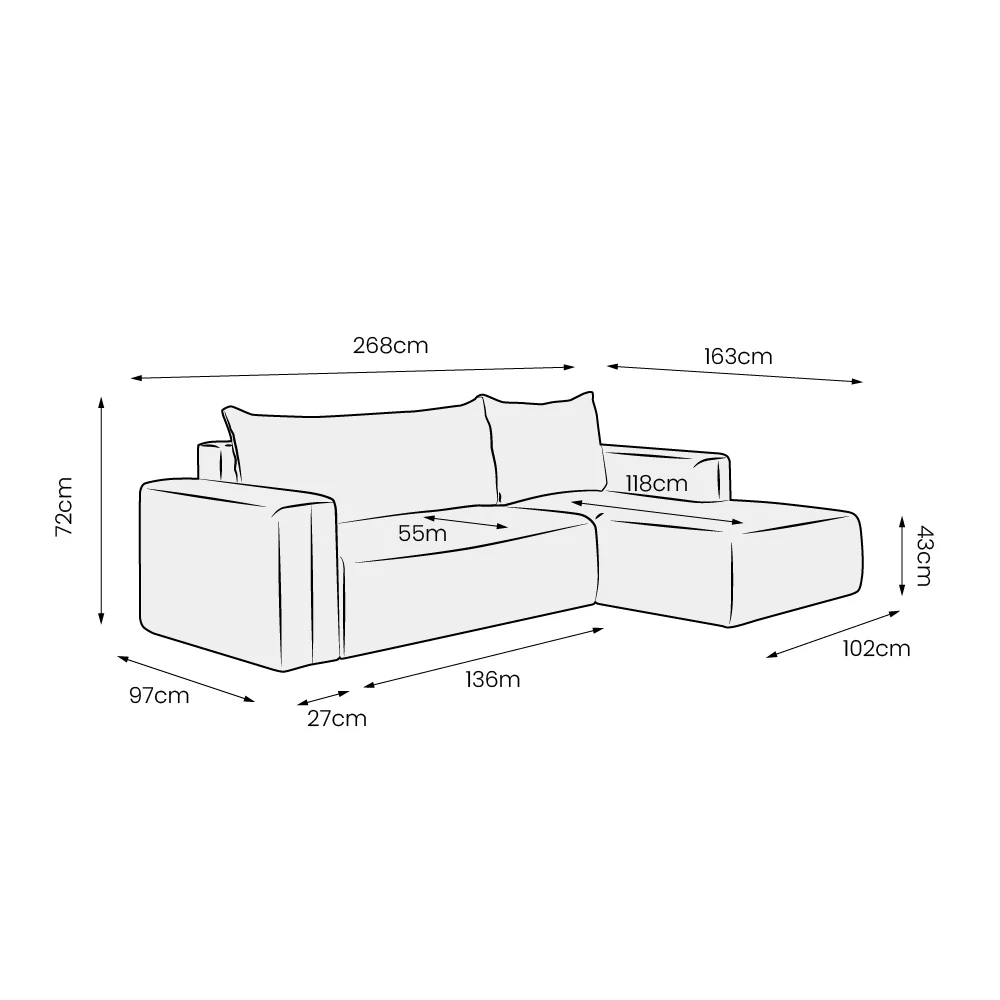 Conçu pour le confort au quotidien, il offre une assise spacieuse et des coussins moelleux qui assurent un soutien optimal. Sa large méridienne, est idéale pour se détendre ou accueillir vos invités.