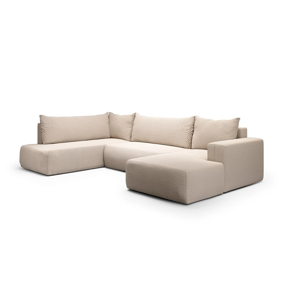 Son revêtement tissu doux et texturé, ajoute une dimension tactile unique et du caractère à votre décoration. La teinte écrue lumineuse de ce canapé agrandit visuellement l’espace et s'adapte harmonieusement à divers styles d'intérieur. Conçu pour un confort supérieur, ce canapé panoramique dispose d'une assise spacieuse et de coussins enveloppants, idéaux pour des moments de détente, en solo comme en famille.