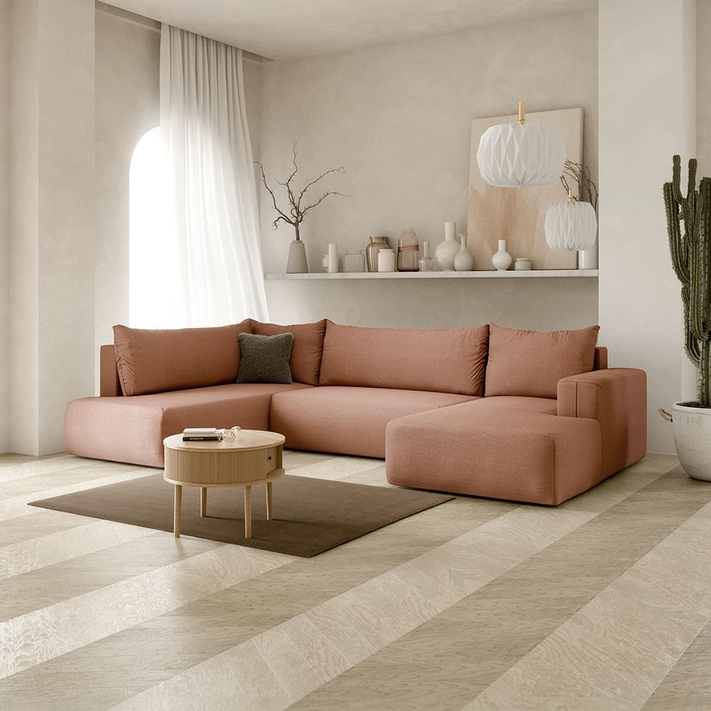 Sublimez votre salon avec ce canapé panoramique d'angle gauche en tissu orange , une pièce élégante et cosy qui allie confort et modernité. Grâce à son design minimaliste et ses lignes épurées, ce canapé panoramique s'intègre parfaitement dans les intérieurs contemporains, scandinaves et modernes, créant une atmosphère chaleureuse et accueillante.