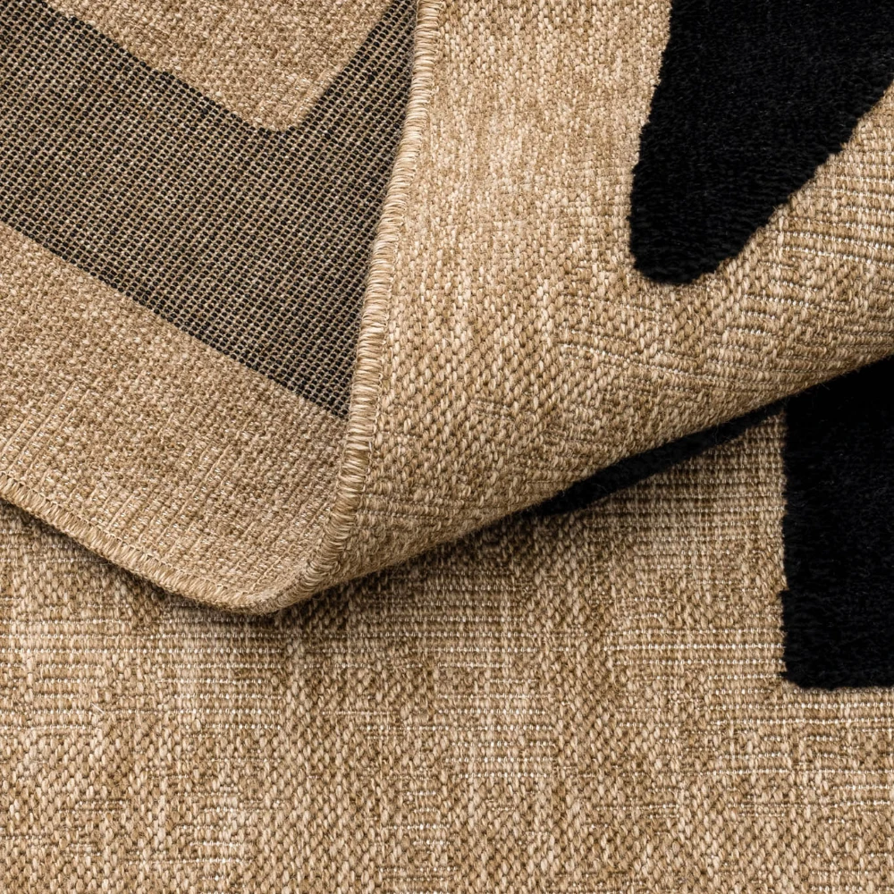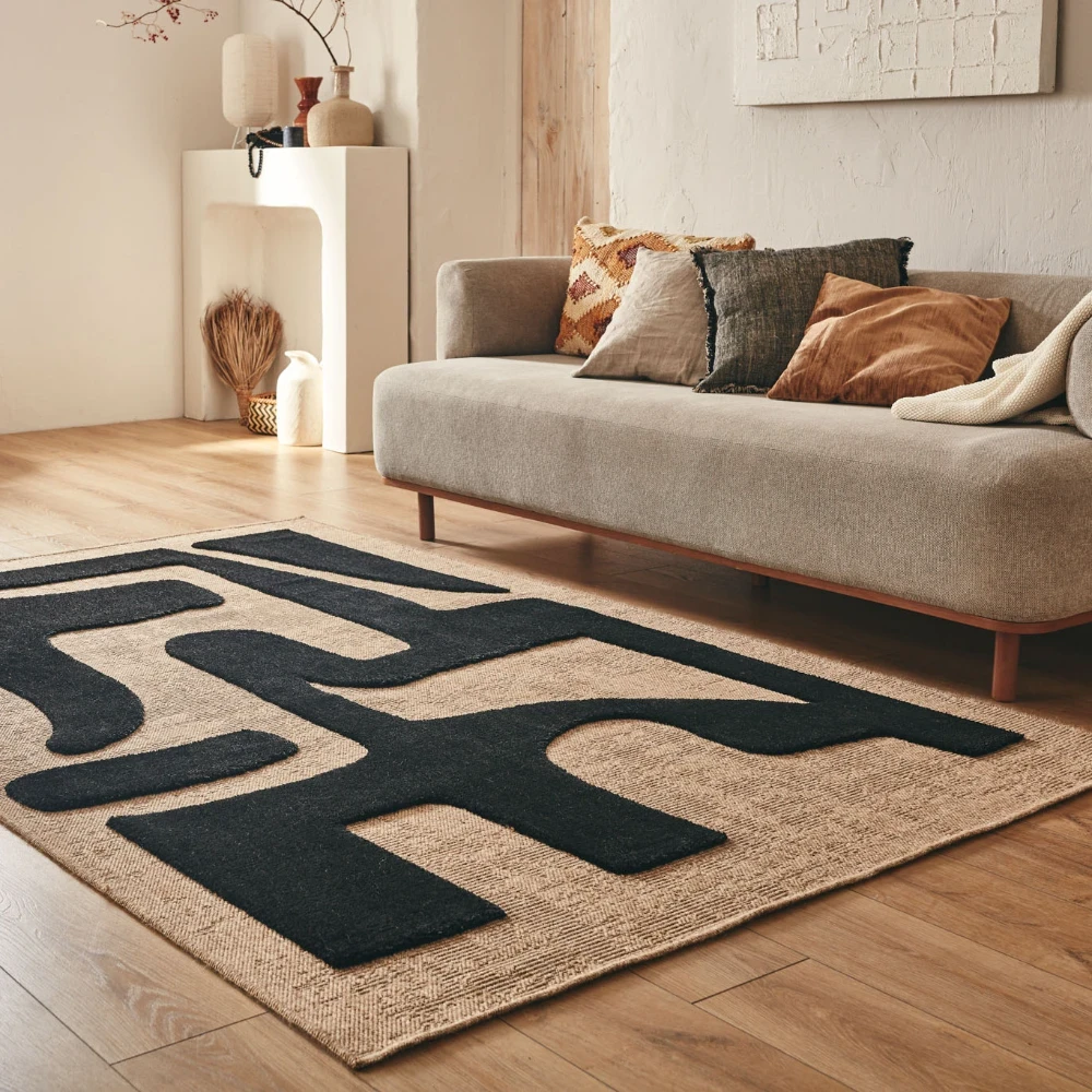 Tapis rustique avec motif en relief noir. Un tapis traditionnel avec un motif complexe de couleur noir ajoutant de la texture et de l'attrait à n'importe quelle pièce.