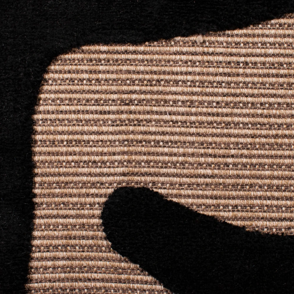 Tapis naturel avec motif visage en relief noir. Son design à motifs noirs ajoute une touche accrocheuse à n'importe quelle pièce, tandis que ses fibres naturelles offrent une surface durable et confortable.