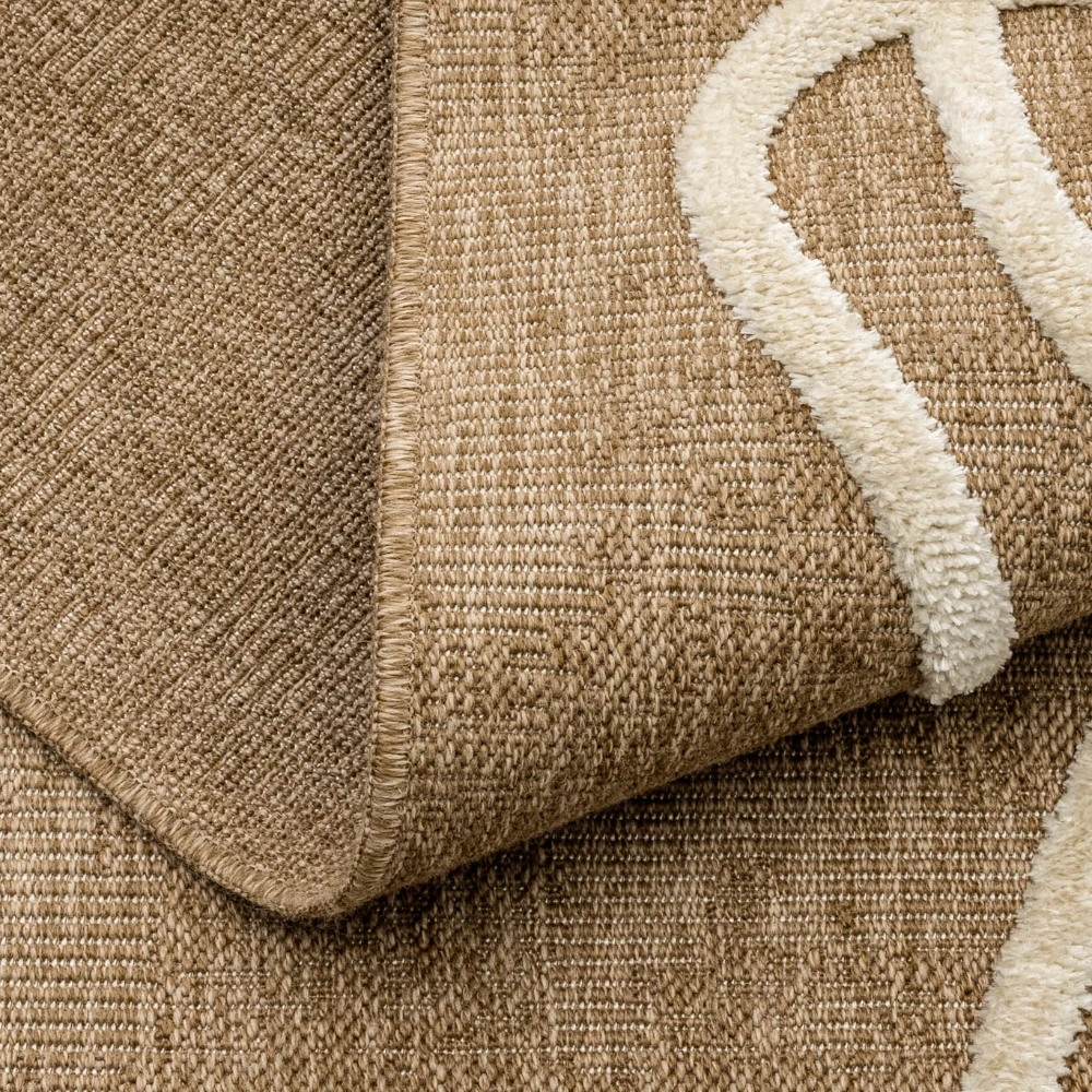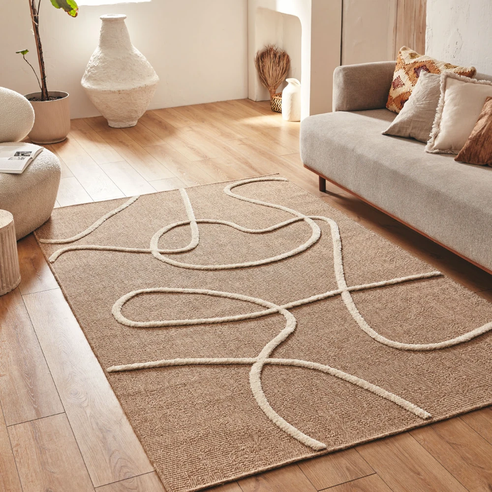 Tapis naturel avec motif géométrique en relief blanc. Son design à motif blanc ajoute une touche accrocheuse à n'importe quelle pièce, tandis que ses fibres naturelles offrent une surface durable et confortable.