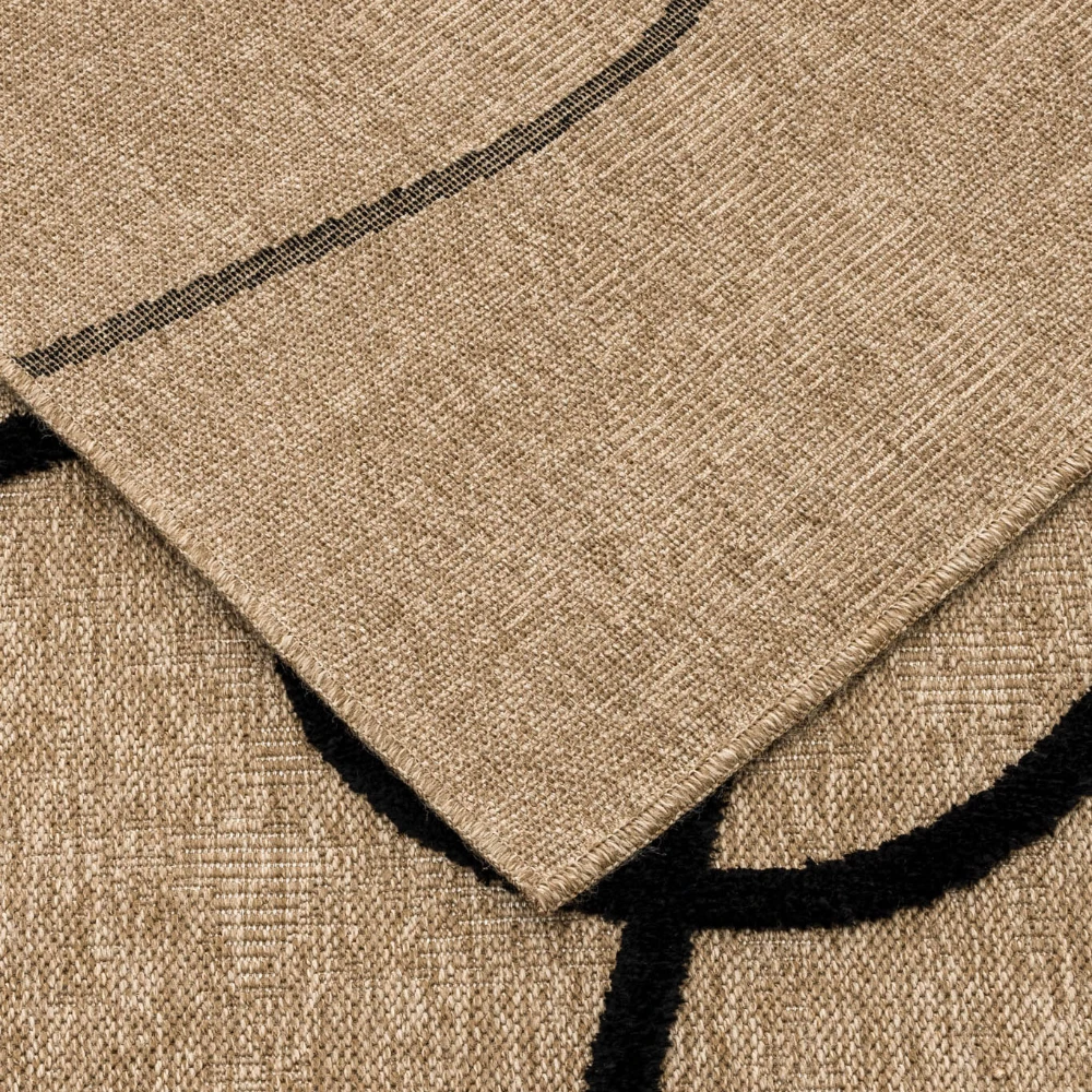Tapis naturel avec motif géométrique en relief noir. Son design à motifs noirs ajoute une touche accrocheuse à n'importe quelle pièce, tandis que ses fibres naturelles offrent une surface durable et confortable.