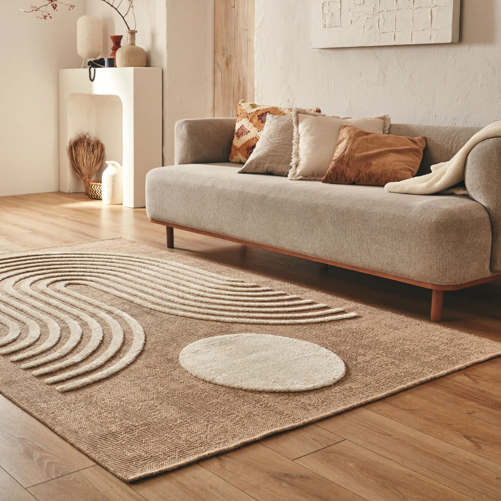 Tapis rustique avec motif en relief blanc. Son design à motif blanc ajoute une touche accrocheuse à n'importe quelle pièce, tandis que ses fibres naturelles offrent une surface durable et confortable.