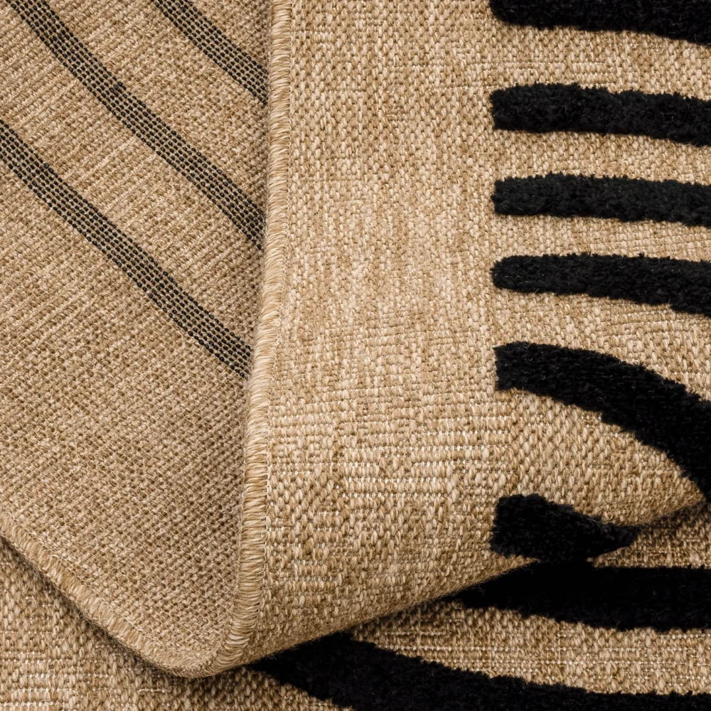 Tapis rustique avec motif en relief noir. Son design à motifs noirs ajoute une touche accrocheuse à n'importe quelle pièce, tandis que ses fibres naturelles offrent une surface durable et confortable.