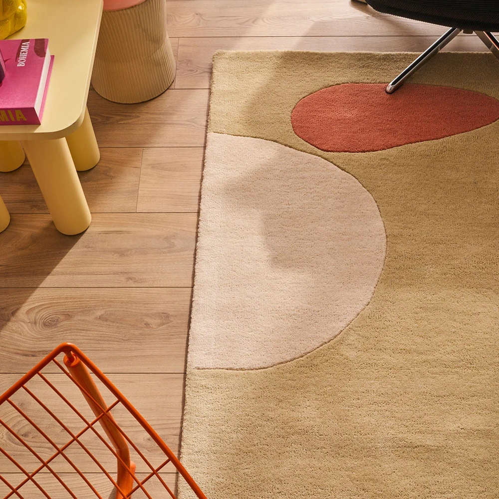 Ses jeux de couleurs et ses formes graphiques attirent le regard tout en créant une ambiance douce et équilibrée. Dans un salon, une chambre ou un bureau, ce tapis devient une pièce maîtresse qui insuffle rythme, élégance et personnalité à la décoration.